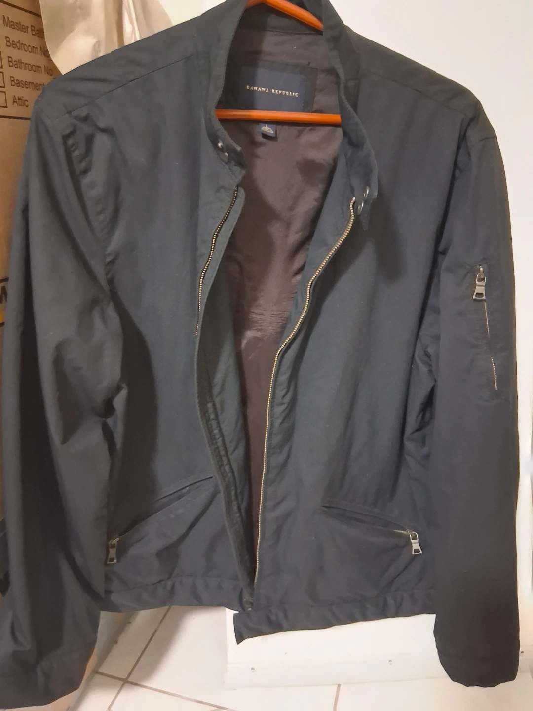 Here's a gently used black jacket from Banana Republic. It's in great condition and ready for a new owner! Perfect for layering or wearing on its own.