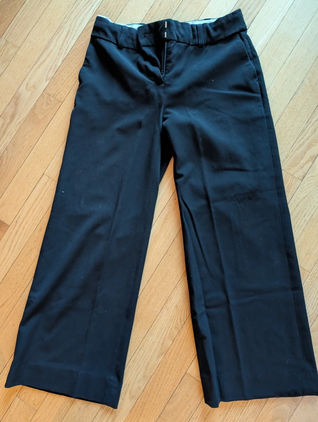 Selling a pair of black wide leg trousers from Cassis. They are made of rayon and spandex. Perfect for a comfortable yet stylish look!
