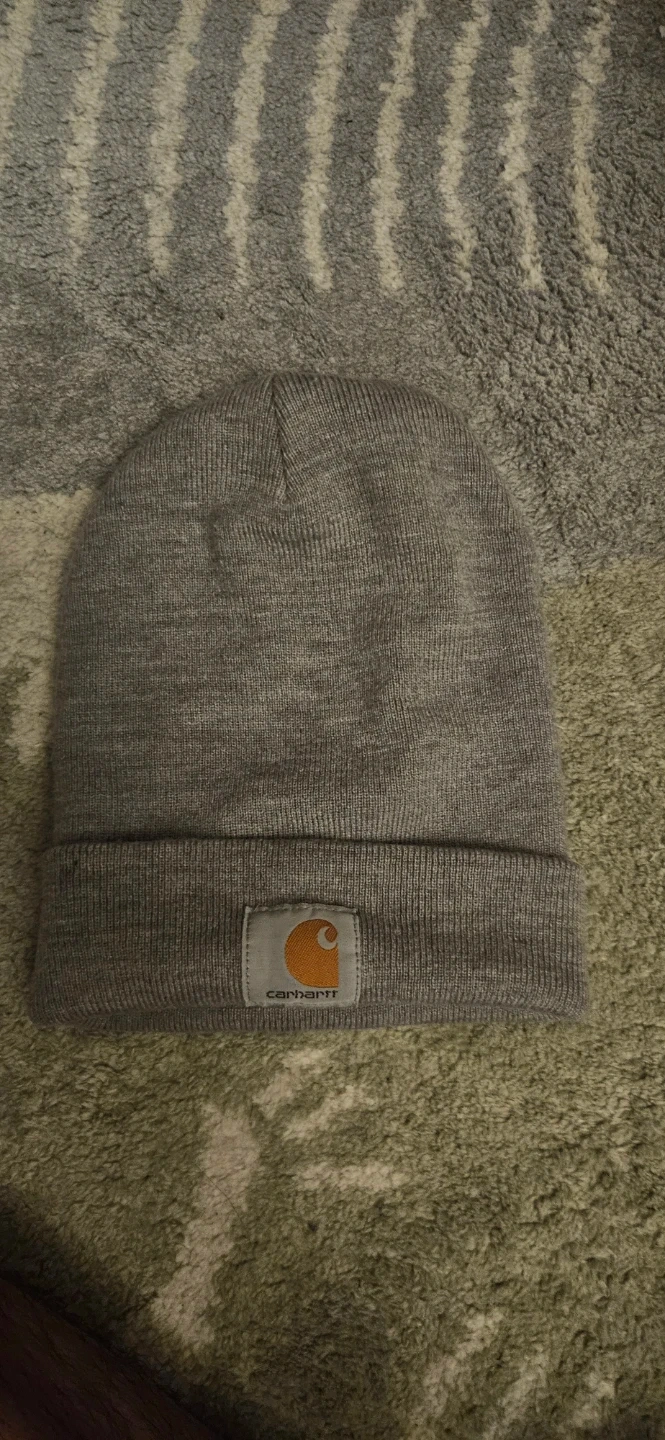 Selling a Carhartt A18 HGY beanie in a nice grey colour! It's made of 100% acrylic and in great condition. One size fits all!