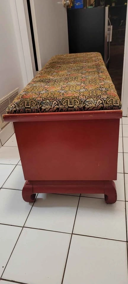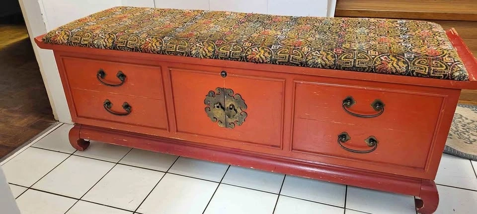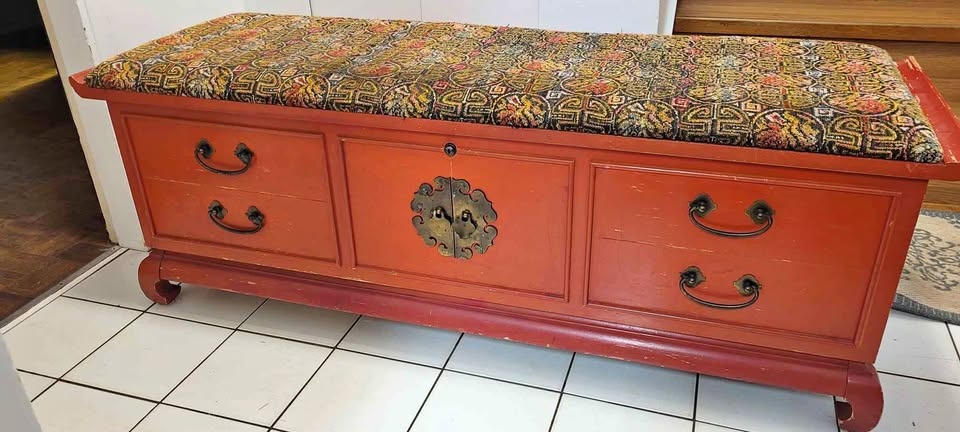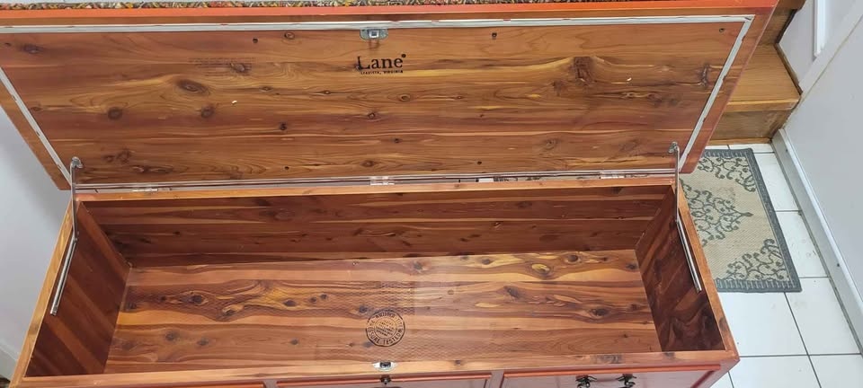 A beautiful and nostalgic piece of furniture! Vintage cedar chests are highly prized for their unique aroma, durability, and classic style. They were often used to store clothing, linens, and other treasured items. The cedar wood naturally repels moths, mildew, and other pests, making it a practical choice for storing delicate items.