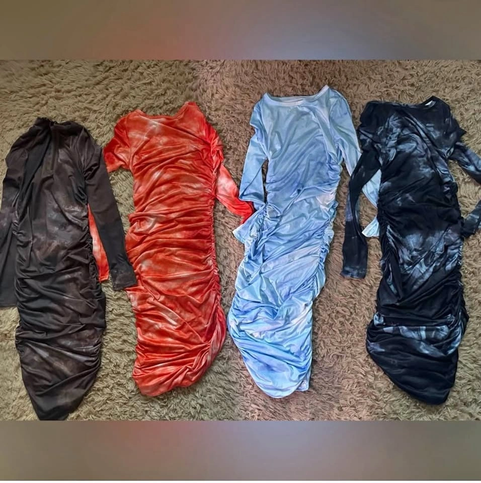 The 4 dresses in the first photo are $25 each or all for $80 (fits M/L)