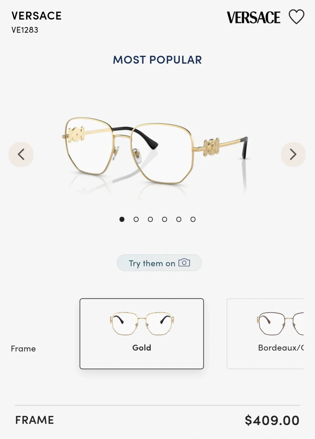 Selling a pair of Versace glasses with a gold frame. They're in great condition and come with the original case. The model number is VE1283, and they originally retailed for $409.