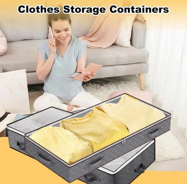 Keep your space tidy with these brand new Underbed Storage Containers, each boasting a generous 90L capacity, perfect for stowing away clothes and more under your bed. These storage bags are designed to maximize space and keep your items organized. I am selling a set of these storage containers, so you'll have plenty of room to store your belongings.