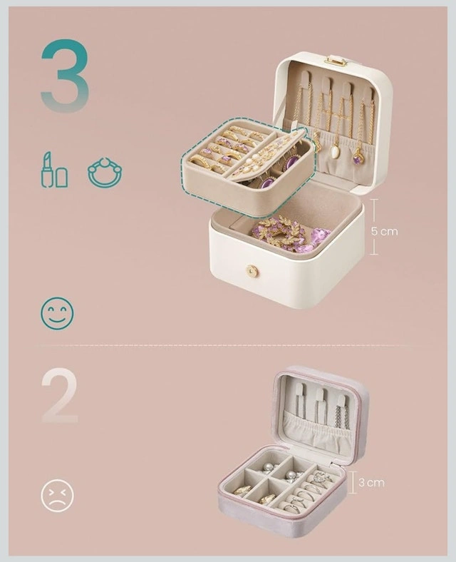 Keep your precious gems safe and stylish with this new SONGMICS jewellery box! This compact and portable jewellery box has multiple compartments for rings, necklaces, bracelets, and other small accessories. Features: * Compact and portable design. * Multiple compartments for organized storage. * Soft lining to protect jewellery from scratches. * Secure clasp closure. Looking for a safe haven for your bling? This jewellery box is like a tiny castle for your treasures. Don't let this gem get away! Act now – if the ad's still up, it's up for grabs!