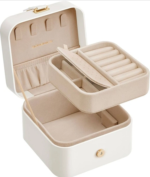 Keep your precious gems safe and stylish with this new SONGMICS jewellery box! This compact and portable jewellery box has multiple compartments for rings, necklaces, bracelets, and other small accessories. Features: * Compact and portable design. * Multiple compartments for organized storage. * Soft lining to protect jewellery from scratches. * Secure clasp closure. Looking for a safe haven for your bling? This jewellery box is like a tiny castle for your treasures. Don't let this gem get away! Act now – if the ad's still up, it's up for grabs!