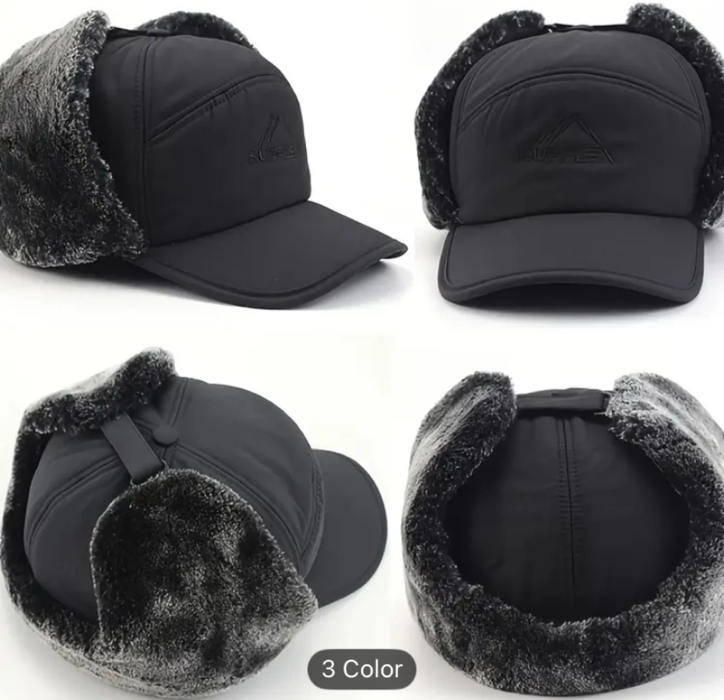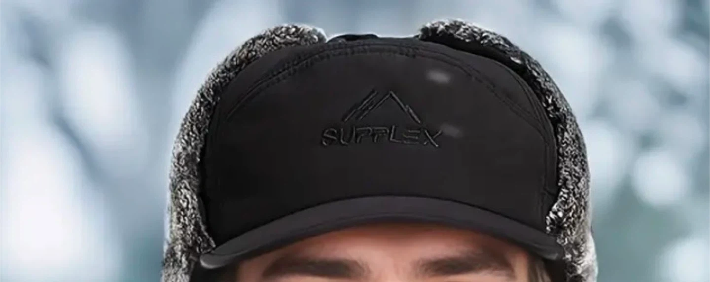 Stay warm this winter with this Supplex trapper hat! It features a face cover and ear flaps for extra protection from the cold. The hat is black and appears to be in good condition.