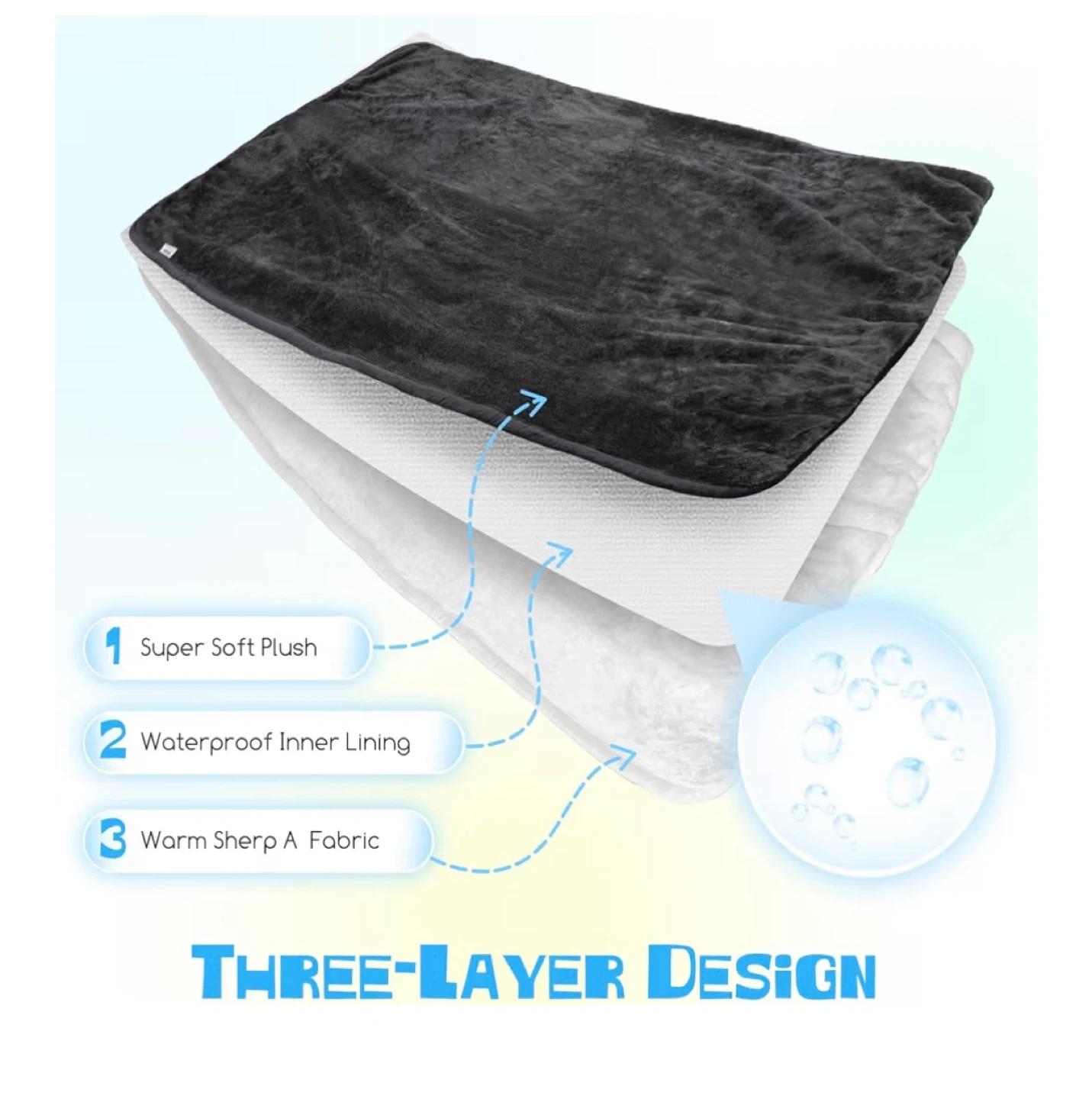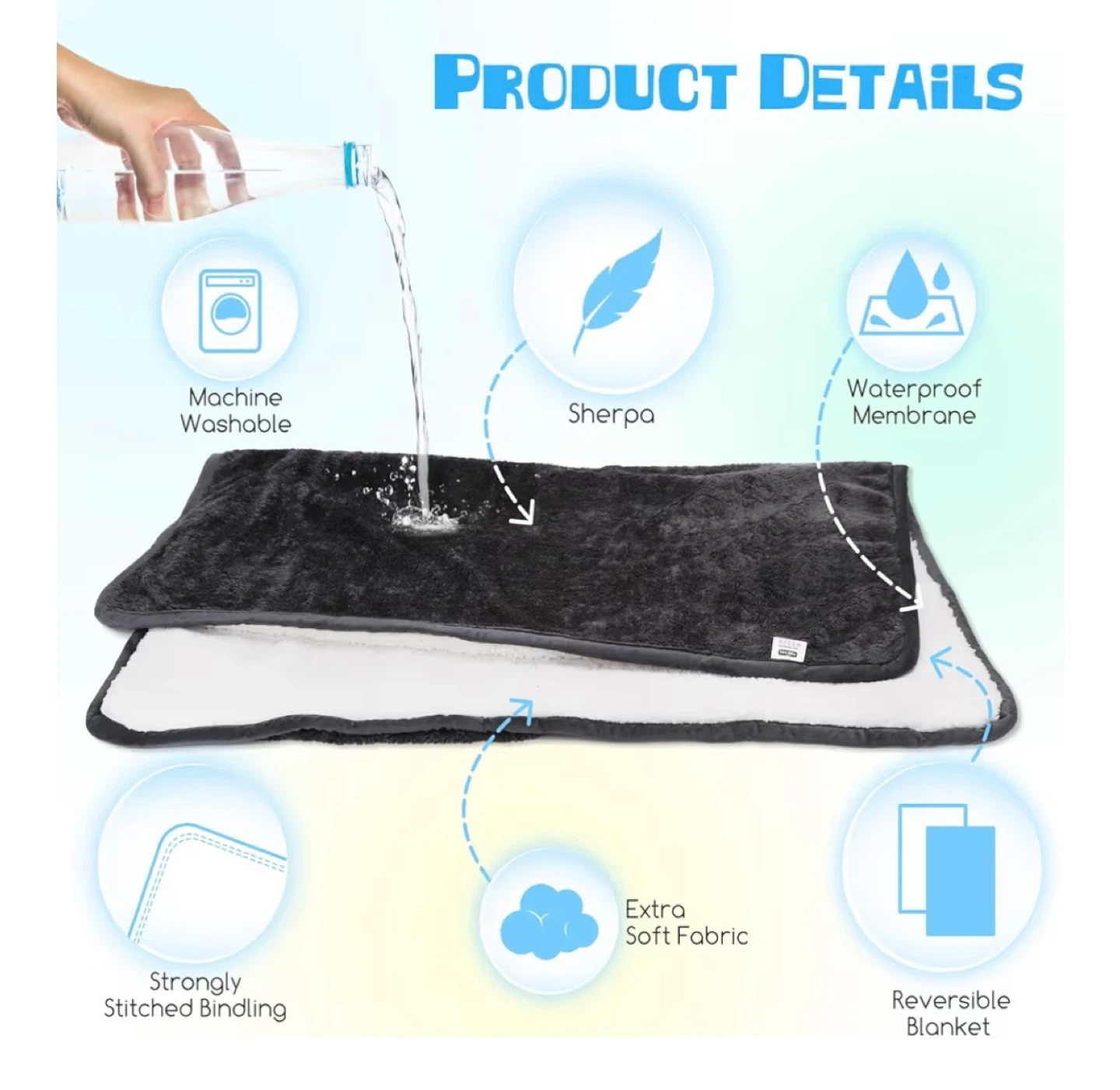 - Material: Sherpa, waterproof membrane, and soft plush fabric