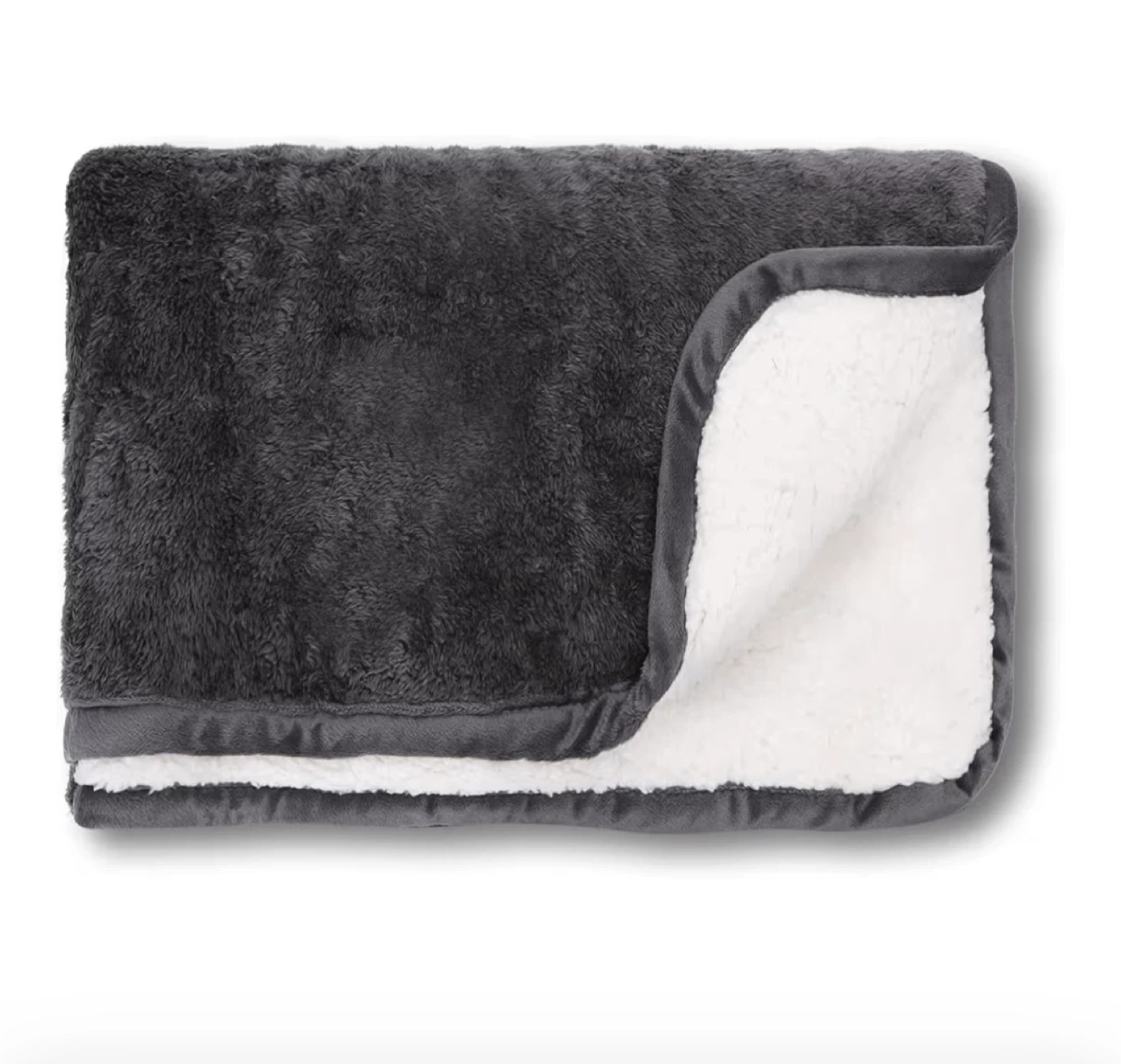 Keep your furry friend cozy with this super soft and fluffy pet blanket! It's grey on one side and white sherpa on the other, making it reversible.