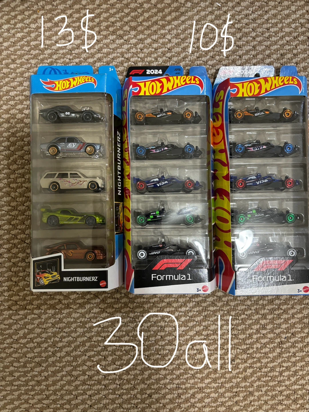 One Nightburnerz pack and two Formula 1 packs. Great for collectors or kids who love cars