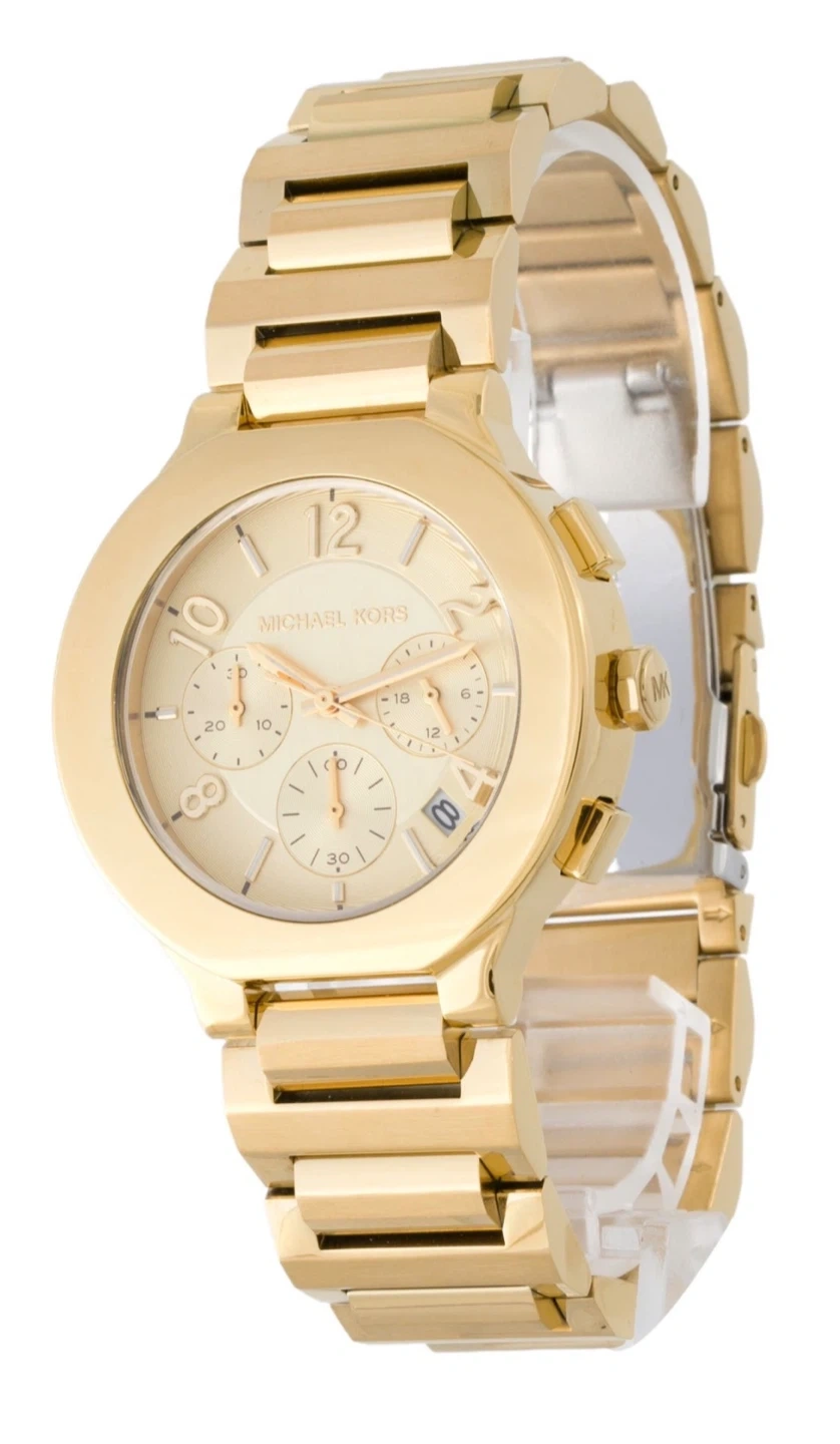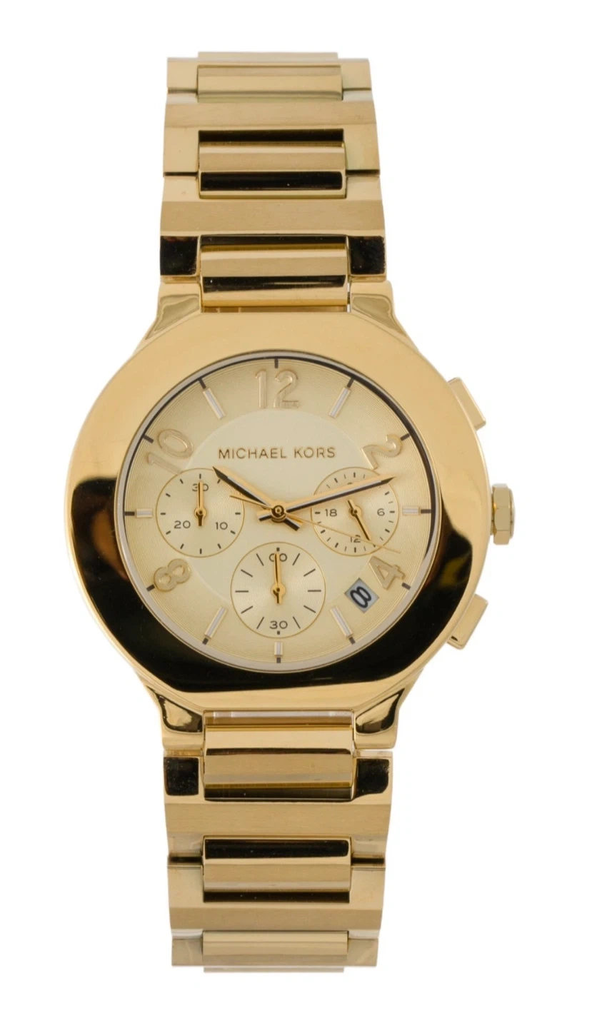 Selling a beautiful gold Michael Kors watch! It's in great condition and ready to wear. The watch features a gold-tone finish and a chronograph dial. Perfect for adding a touch of elegance to any outfit