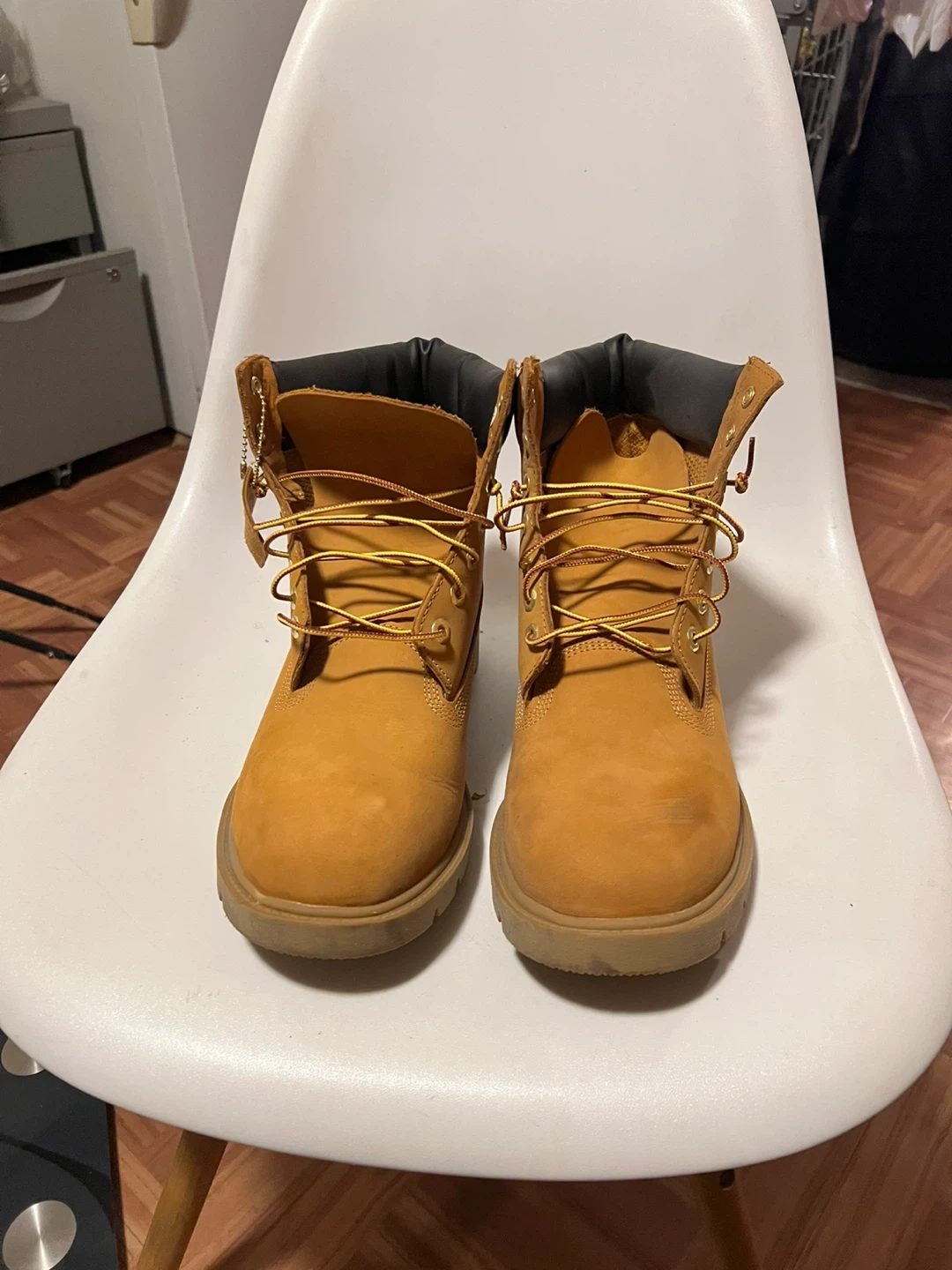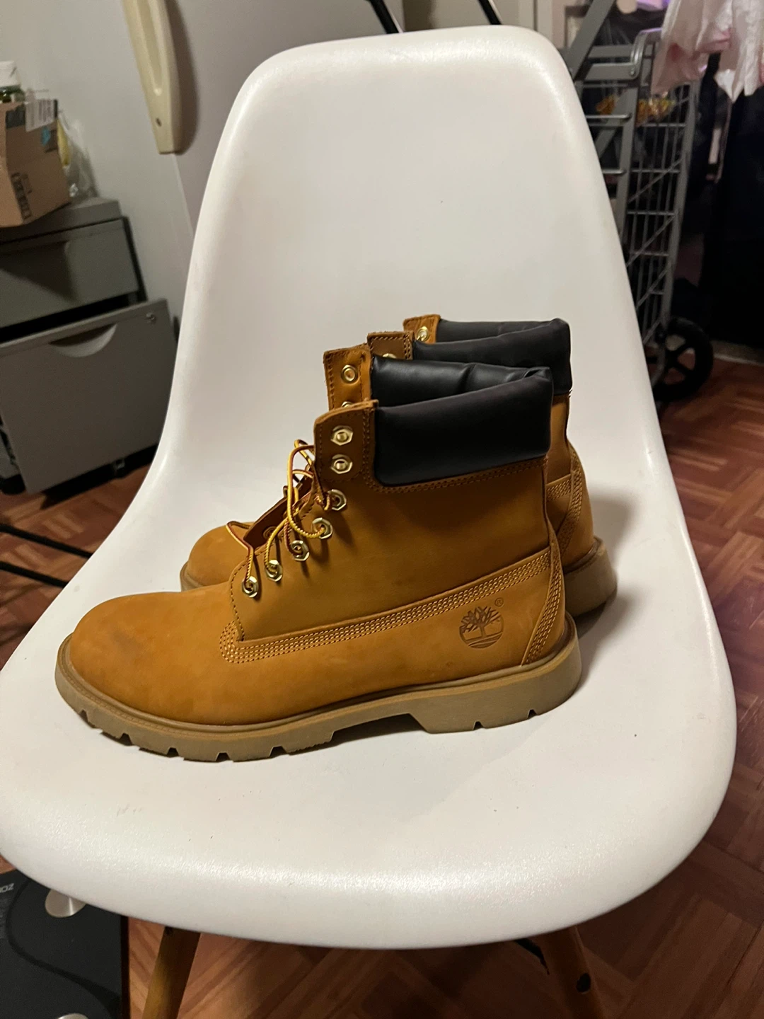 Selling a pair of Timberland 6" Premium boots in wheat color. They are in good condition and ready for a new owner. The size is US 11.5, EU 45.5, UK 11, JP 29.5. These classic boots are durable and stylish!