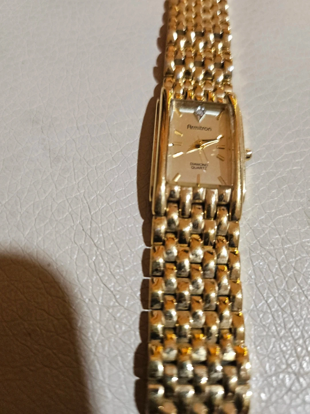 Selling a beautiful Armitron Diamond Quartz watch! It's a lovely gold color and in great condition. Perfect for adding a touch of elegance to any outfit