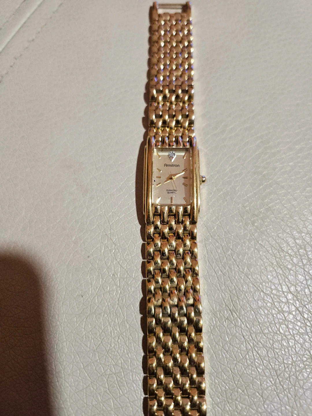 Selling a beautiful Armitron Diamond Quartz watch! It's a lovely gold color and in great condition. Perfect for adding a touch of elegance to any outfit