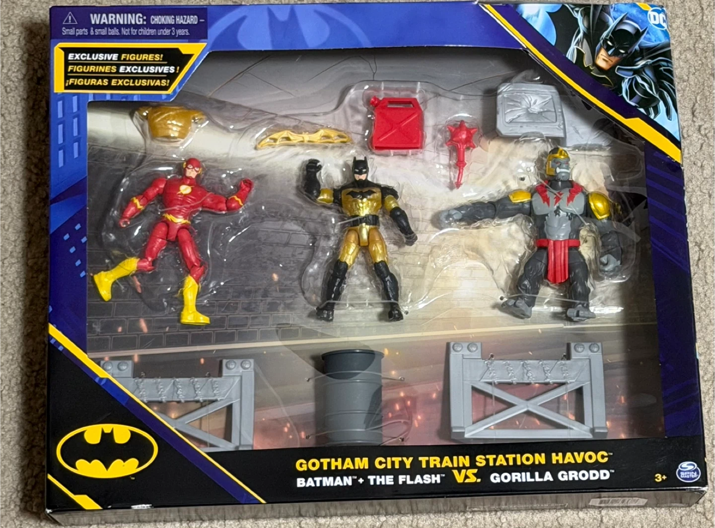 Selling a DC Batman + The Flash vs Gorilla Grodd Gotham City Train Station Havoc action figure set! The set includes exclusive figures and is suitable for children ages 3+