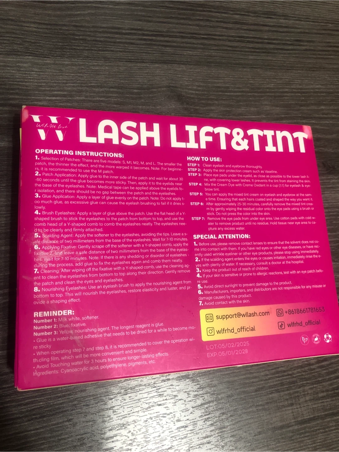Selling a Lash & Brow Lift & Tint Kit. It includes auxiliary supplies, lash pads and brushes, perm, fixation, nutrition, and cleanser! The lot number is 05/02/2025 and the expiry date is 05/01/2028!