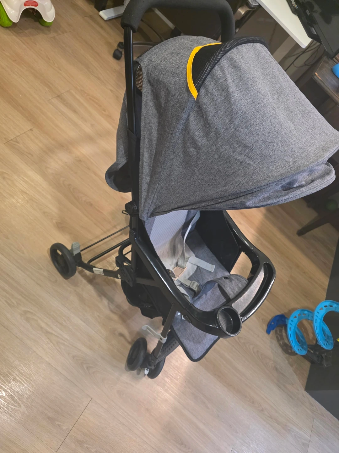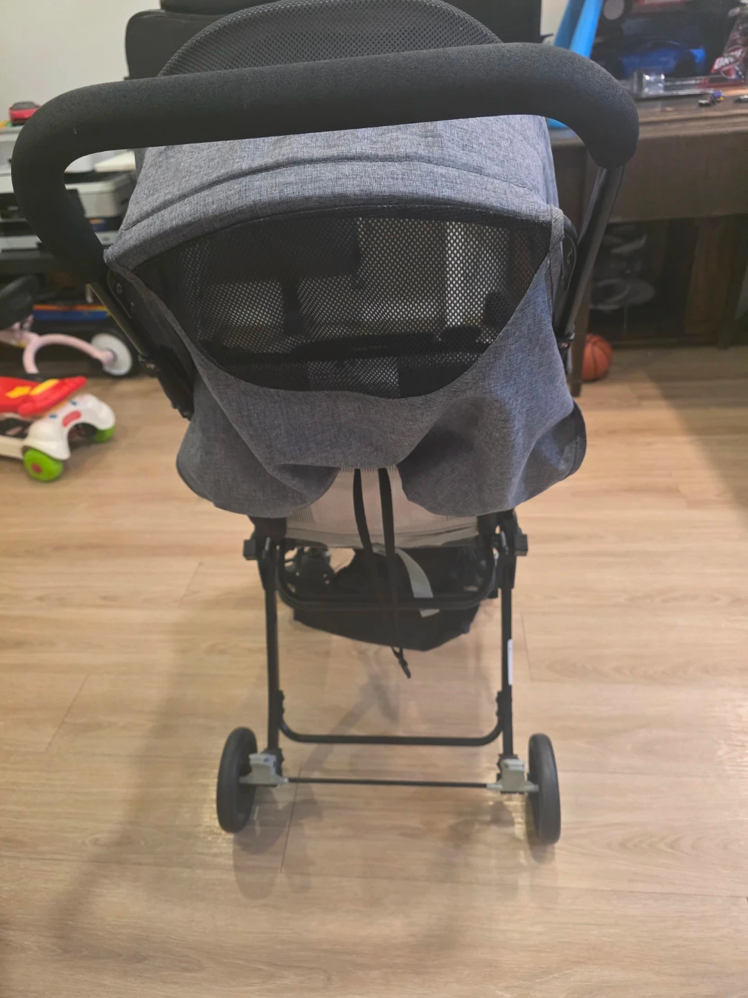 Selling a gently used baby stroller in great condition! It's lightweight and easy to manoeuvre, perfect for walks around the neighbourhood or trips to the park. The stroller features a comfortable seat with a safety harness, a sun canopy, and a storage basket underneath. It's been well-cared for and is ready for its next little adventurer