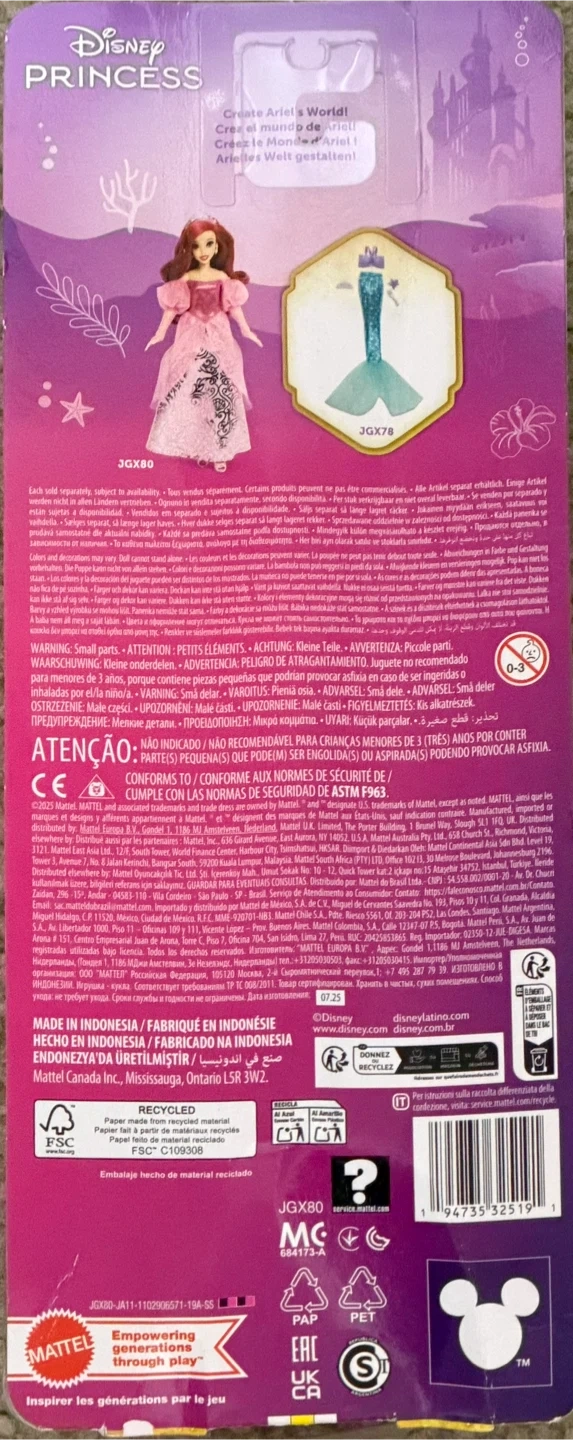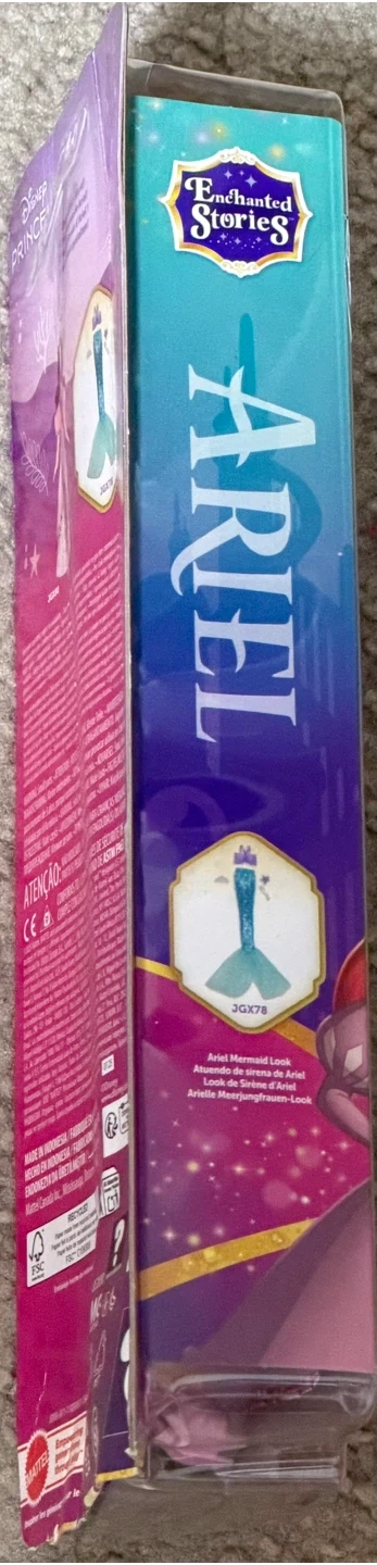 I'm selling a Disney Princess Style Stories Ariel Doll. It's brand new in the box! This doll is part of the Enchanted Stories series and is recommended for ages 3+. It includes a mermaid tail accessory for dress-up fun