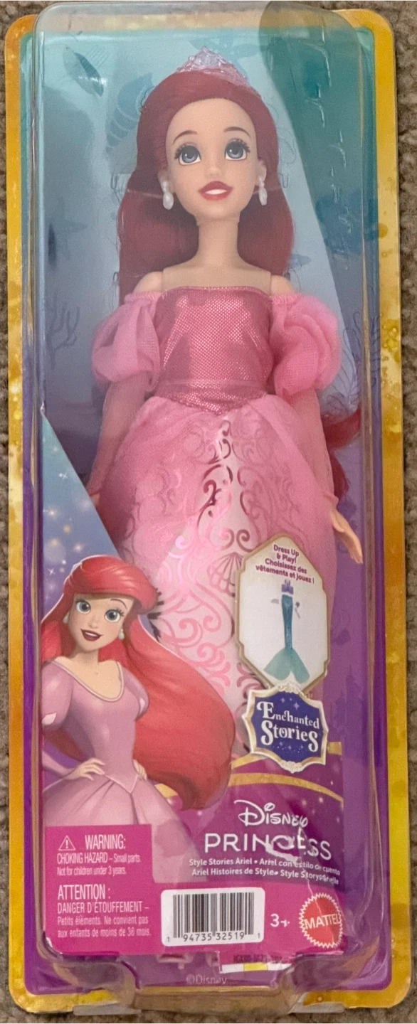 I'm selling a Disney Princess Style Stories Ariel Doll. It's brand new in the box! This doll is part of the Enchanted Stories series and is recommended for ages 3+. It includes a mermaid tail accessory for dress-up fun