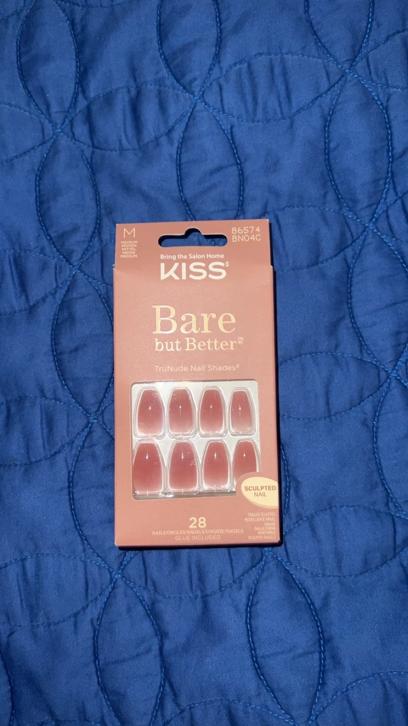 Selling a set of KISS Bare but Better TruNude Nail Shades. This set includes 28 nails and glue, perfect for bringing the salon home! These are sculpted nails in medium size.