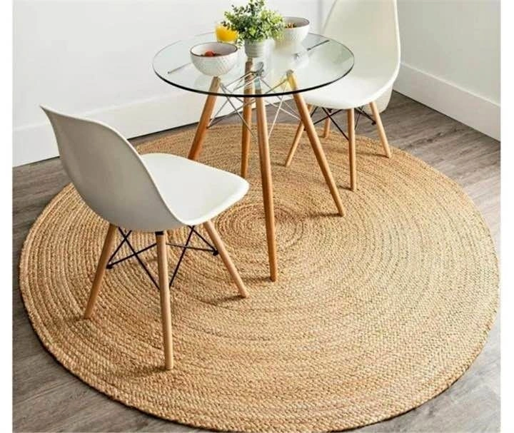 GRUHUM Round Jute Area Rug 4ft Natural Fibre Hand Woven. Rustic Vintage Boho style. Beige Braided Reversible EcoFriendly Rugs for Bedroom Kitchen Living Room Farmhouse Hallways Enterways (4' ft Circle)