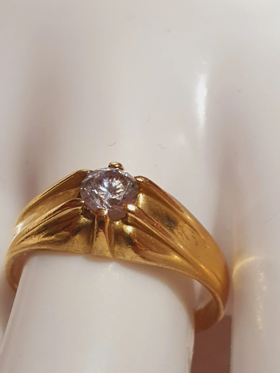 Selling a gold ring featuring a stone. It has a classic design and is in good condition. The ring weighs approximately 3.06 grams.
