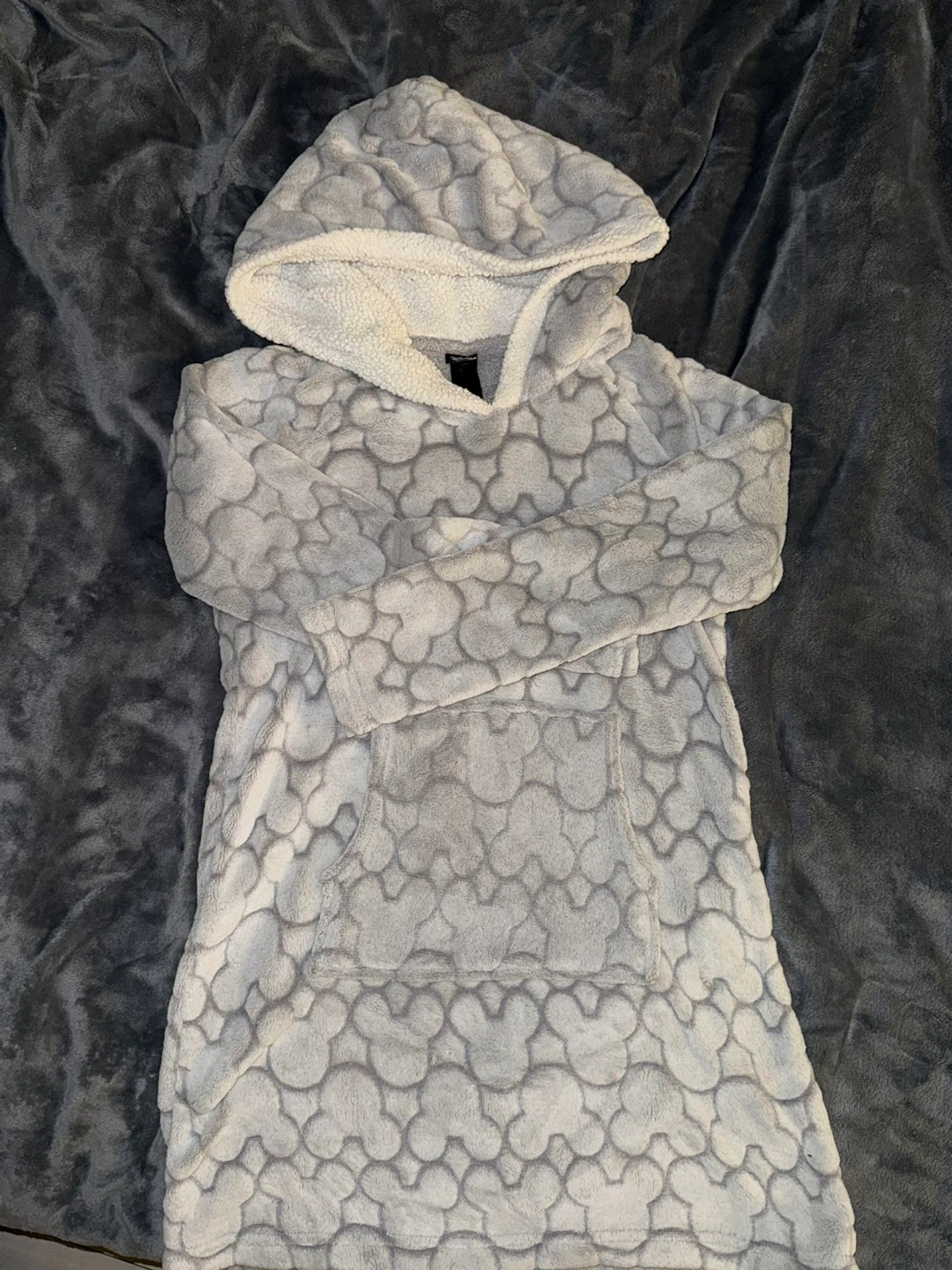 Cozy up with this Disney snuggle hoodie. It's a super comfy and warm way to stay snug during those chilly evenings. The grey colour and Mickey Mouse pattern make it cute.