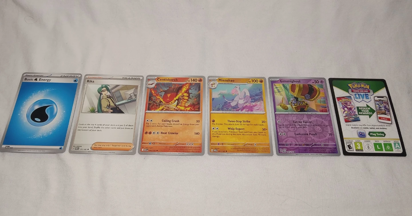 Selling a set of 5 Pokemon Trading Cards and 1 TCG live Code Card.