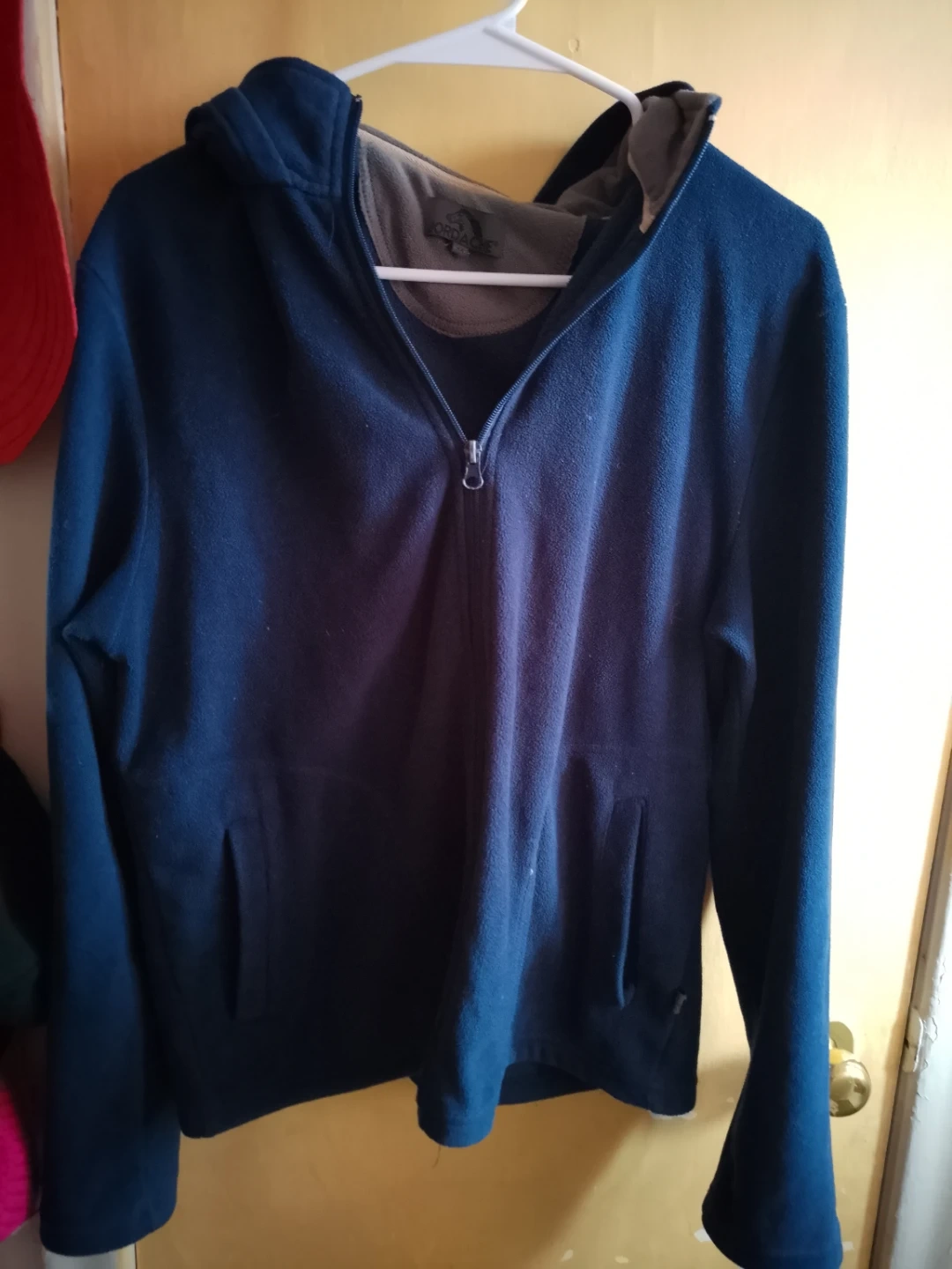 Cozy Jordache fleece hoodie in a nice navy blue colour! It's a size medium and in great condition. Perfect for layering or just lounging around the house