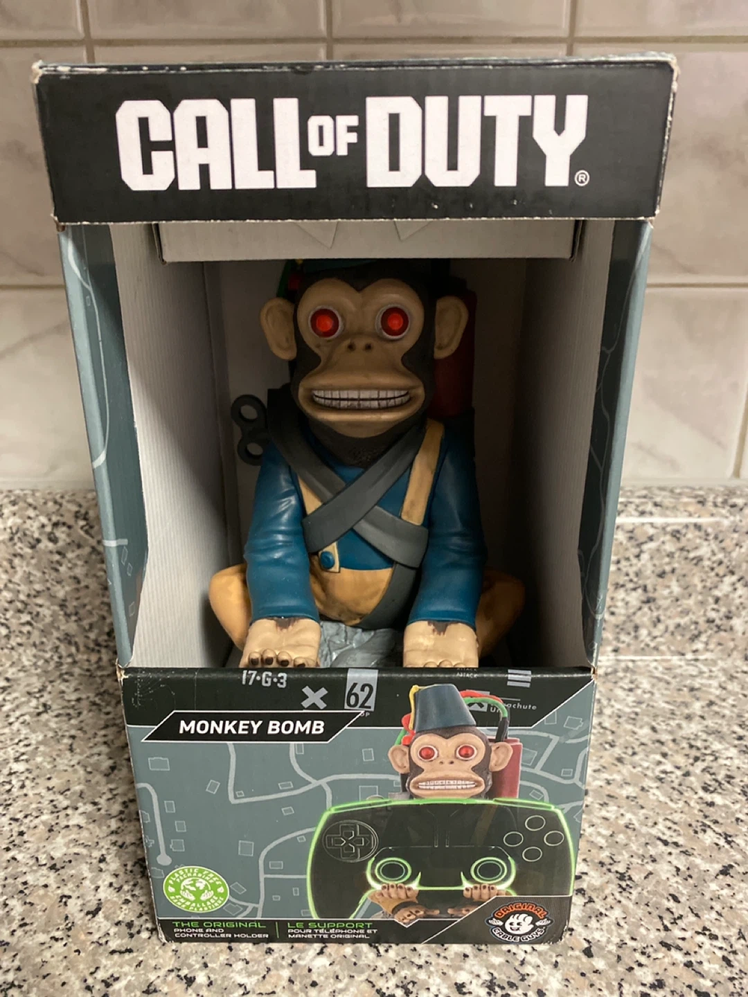 Selling NEW Call of Duty Monkey Bomb Controller Holder! It's in NEW condition and comes with the original box. This unique holder is perfect for displaying your controller when you're not gaming