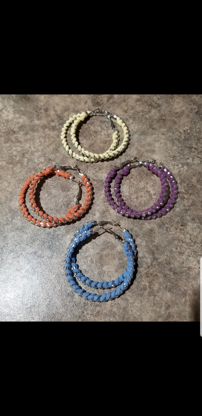 Selling a set of brand new assorted hoop earrings! They come in blue, orange, purple, and yellow. These are sure to add a pop of colour to any outfit! Sold as a set of 4 (one in each color).