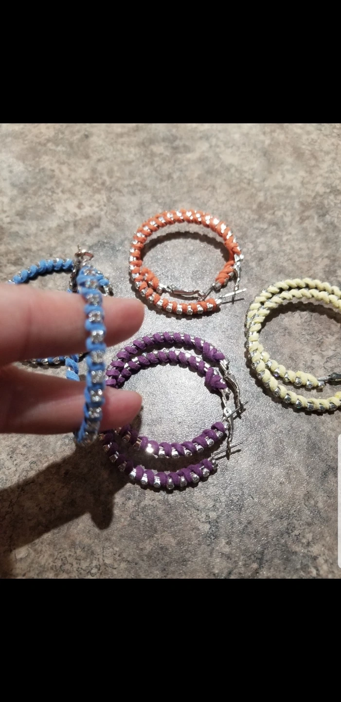 Selling a set of brand new assorted hoop earrings! They come in blue, orange, purple, and yellow. These are sure to add a pop of colour to any outfit! Sold as a set of 4 (one in each color).