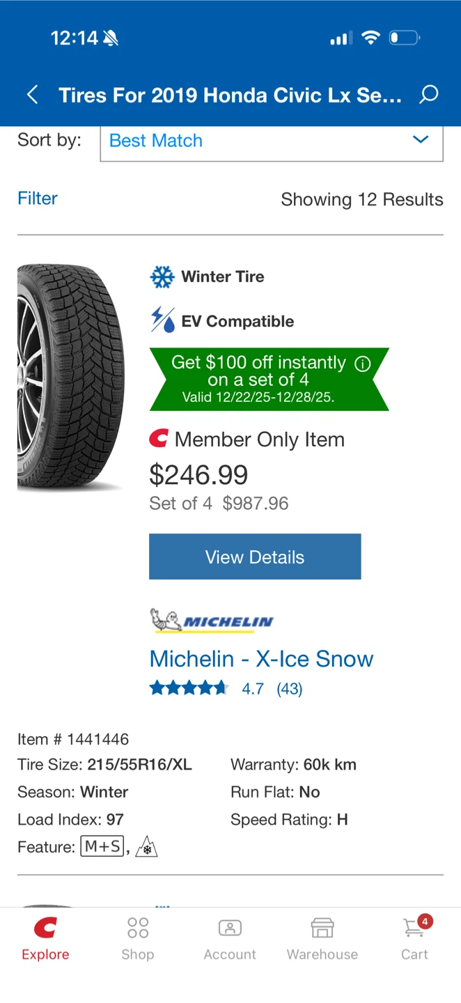 Used for 2 winter seasons on Honda civic, well maintained and stored indoors. Bought them from Costco originally.