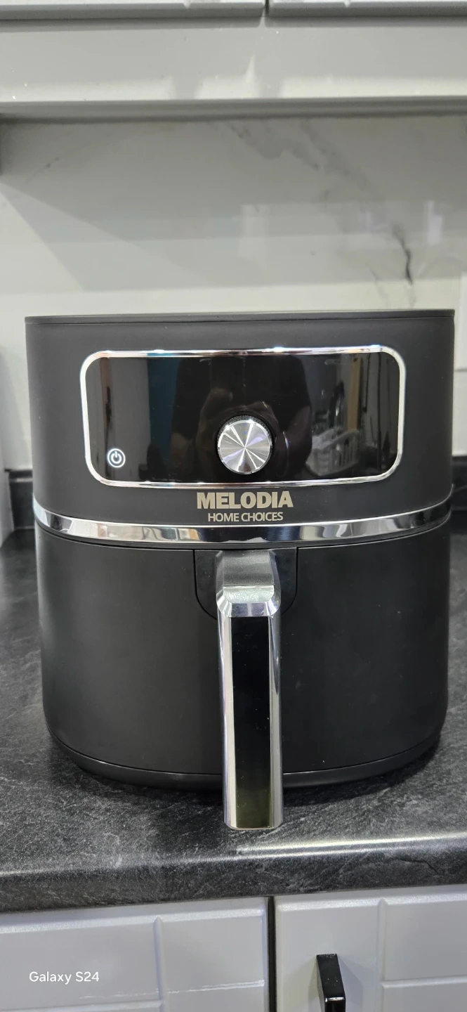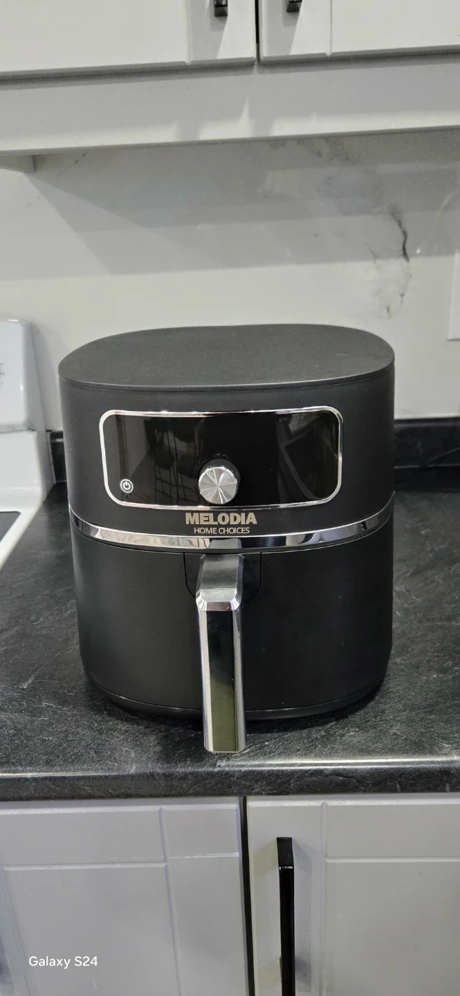 Selling a Melodia Home Choices air fryer that's in excellent condition! It's black and comes with the original box. I jilust used it once and it has no scalratches. It's a great addition to any kitchen!