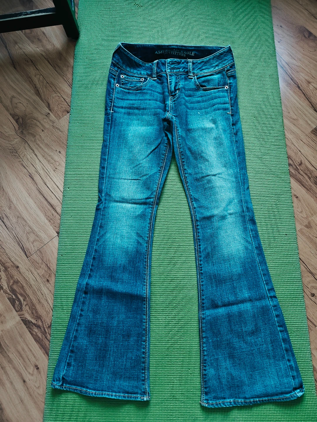 Selling a pair of American Eagle flare jeans in great condition! No stains, no tears! They're a stylish blue denim and perfect for adding a bit of retro flair to your wardrobe. These jeans are ready for a new home!