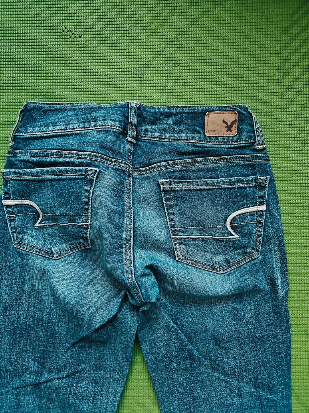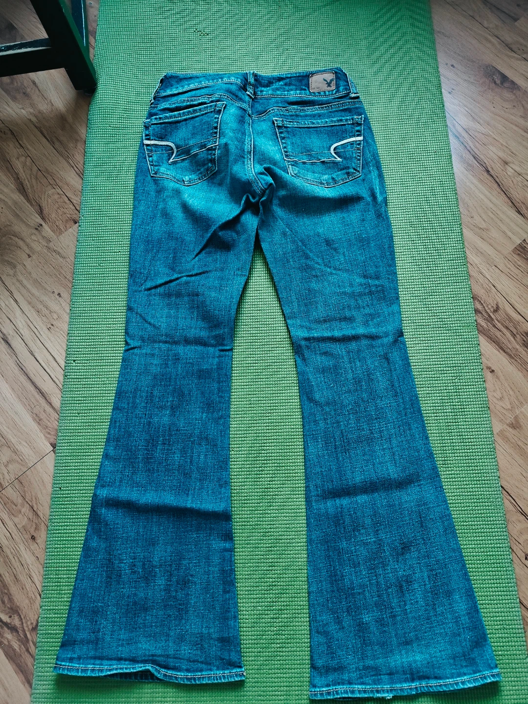Selling a pair of American Eagle flare jeans in great condition! No stains, no tears! They're a stylish blue denim and perfect for adding a bit of retro flair to your wardrobe. These jeans are ready for a new home!