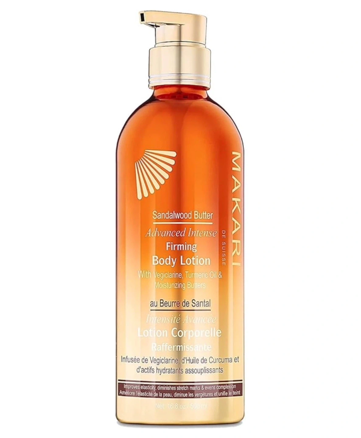 I'm selling a Makari Sandalwood Butter Advanced Intense Firming Body Lotion! This lotion contains Vegiclarine, Turmeric Oil, and moisturizing butters. It improves elasticity, diminishes stretch marks, and evens complexion. The bottle contains 16.8 oz / 500 ml of lotion