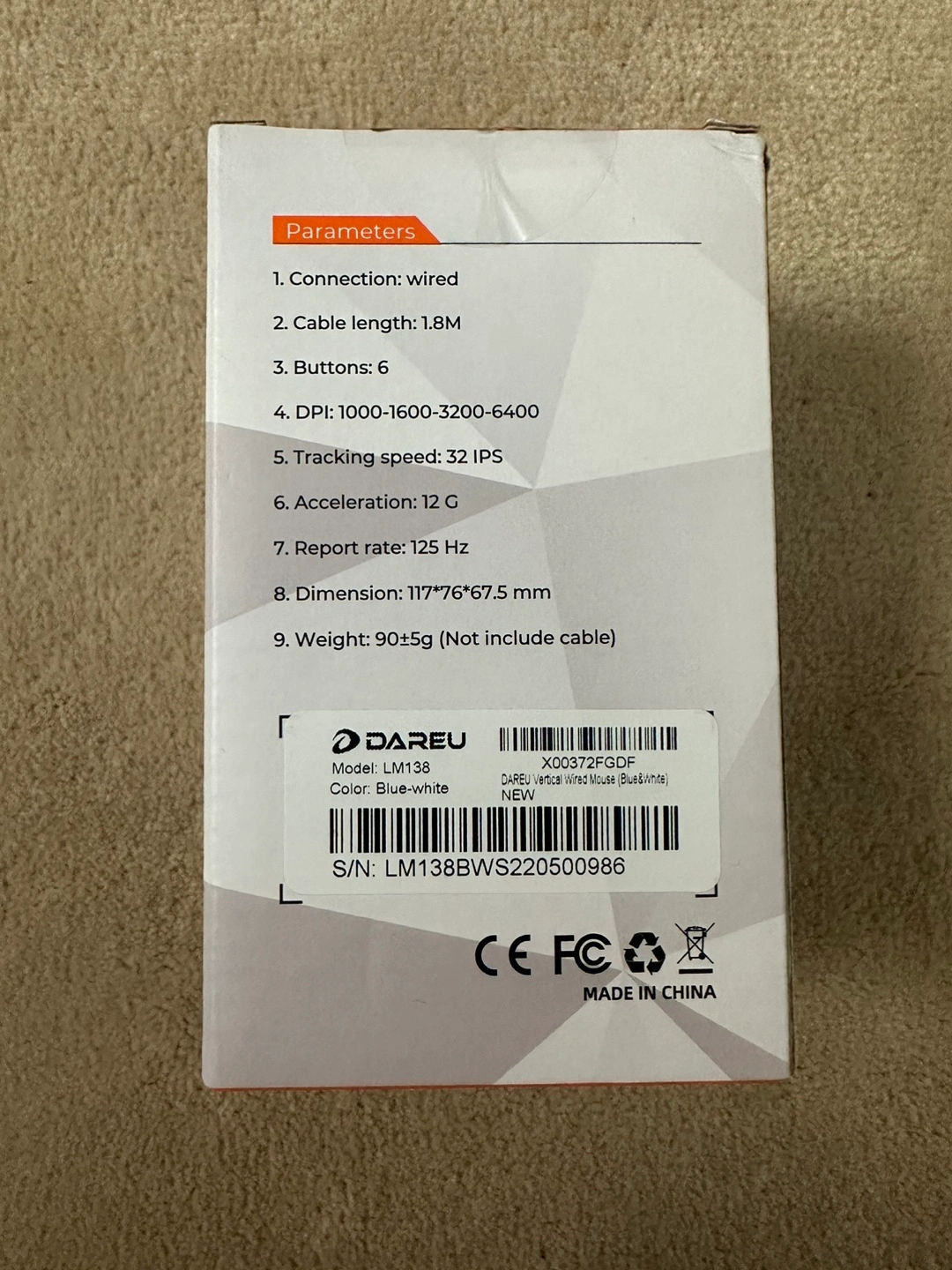 DAREU Vertical Ergonomic 89g Lightweight Optical Mouse