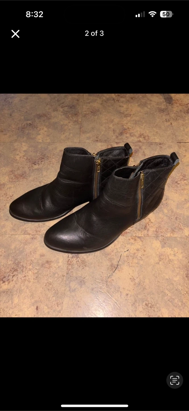 Selling a pair of Steve madden black leather ankle boots in size 10. They have a stylish zipper detail and are in good condition. Perfect for adding a touch of sophistication to your wardrobe!