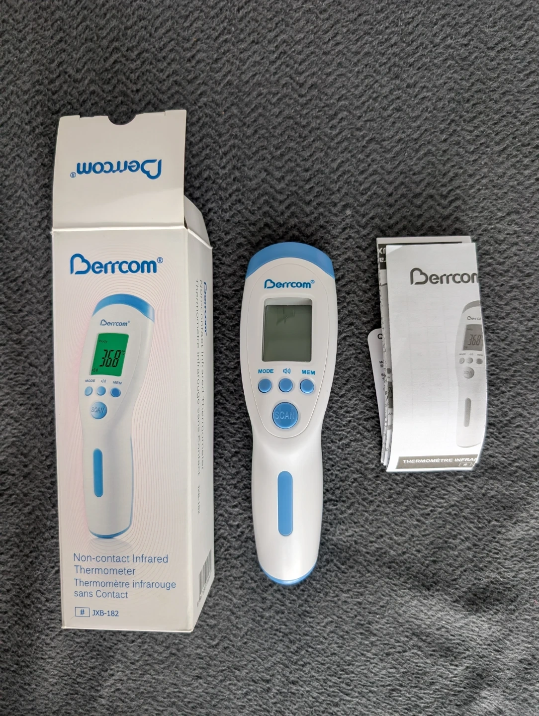 Selling a brand new Berrcom non-contact infrared thermometer, model JXB-182! It comes with the box and instructions. Perfect for quick and easy temperature readings for the whole family