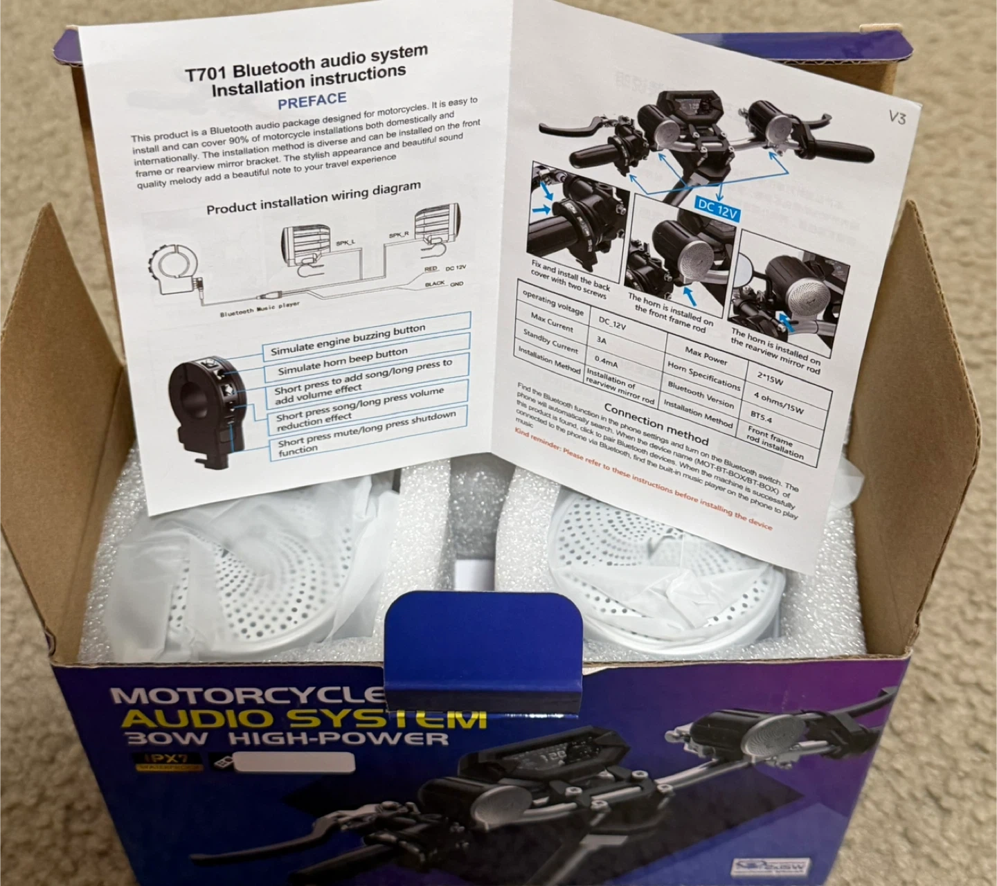 Selling a brand new motorcycle audio system! It's a 30W high-power system that's also waterproof with an IPX7 rating.
