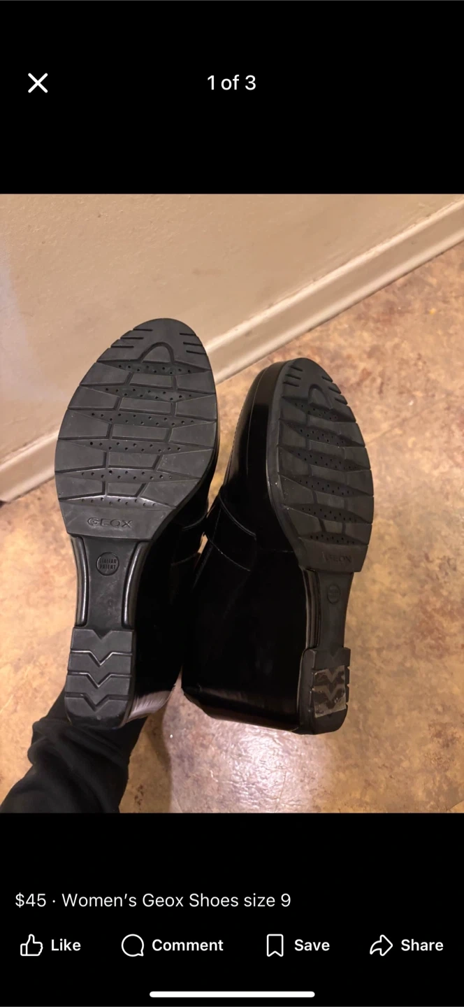 Buy & SellGeox Women's Black Shoes Size 9Geox Women's Black Shoes Size 9$20Selling a pair of Geox women's shoes in size 9! They are black and in great condition. Perfect for adding a touch of style to any outfitConditionNewBrandGeoxWHERE TO MEETCheck LocationView MapSELLERverifiedAshWishing Well Acres1508 reviews0 chats·0 favorites·27 viewsSEND CHAT TO SELLERHi Ash! I’m interested in your listing.Hi Ash! I’m interested in your listing.Get the Karrot app to chatSign In to chat