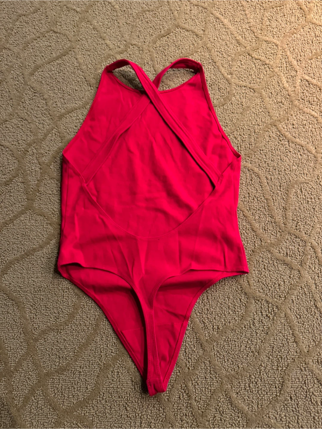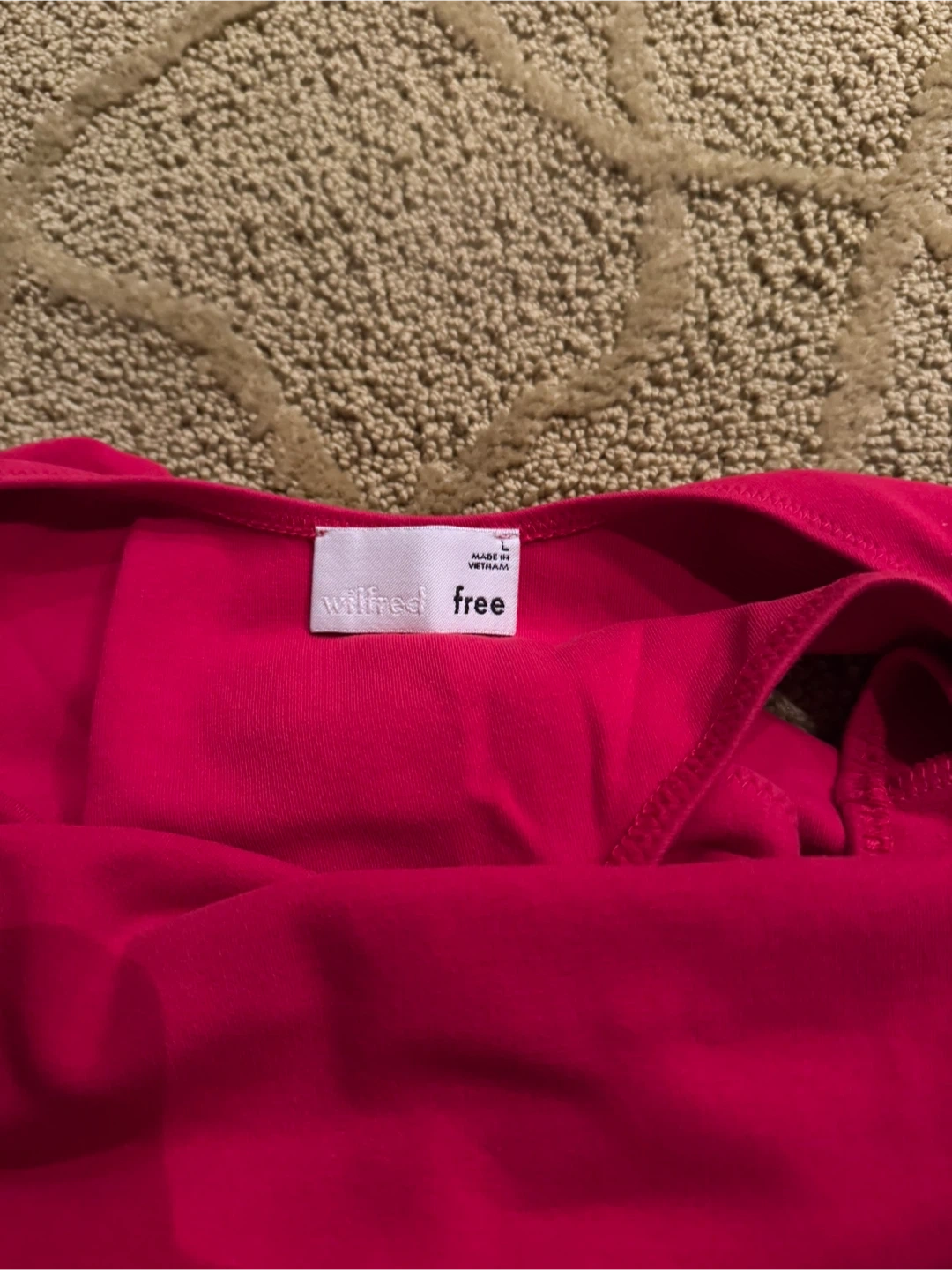 Selling a Wilfred Free bodysuit in a vibrant res colour! It is a size large. Perfect for layering or wearing on its own, this bodysuit is in great condition and ready for a new wardrobe