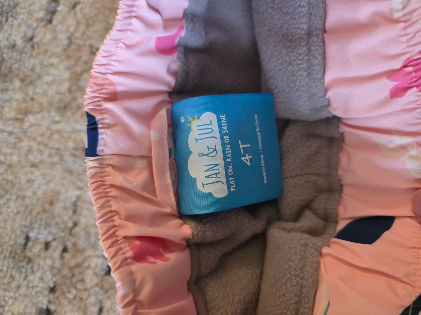Selling a pair of Jan & Jul Play On pants in size 4T. They're in great condition and ready for your little one's next adventure! They have a cute pink pattern with mountains and clouds