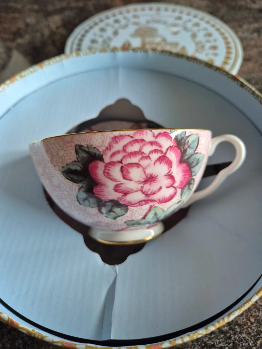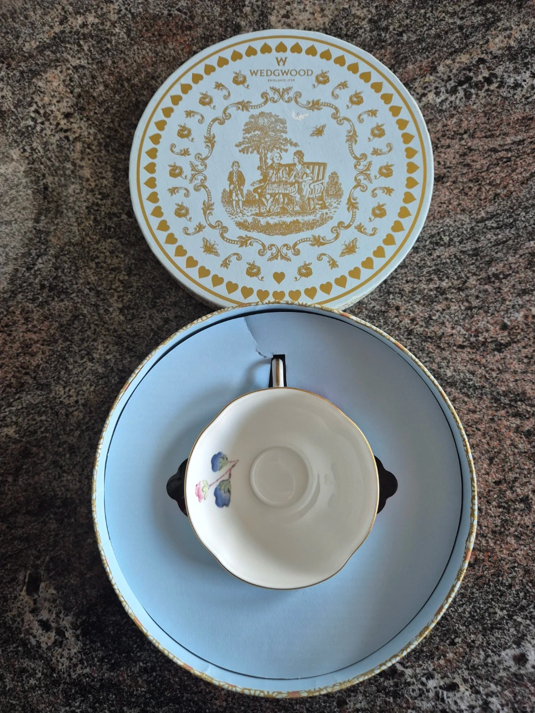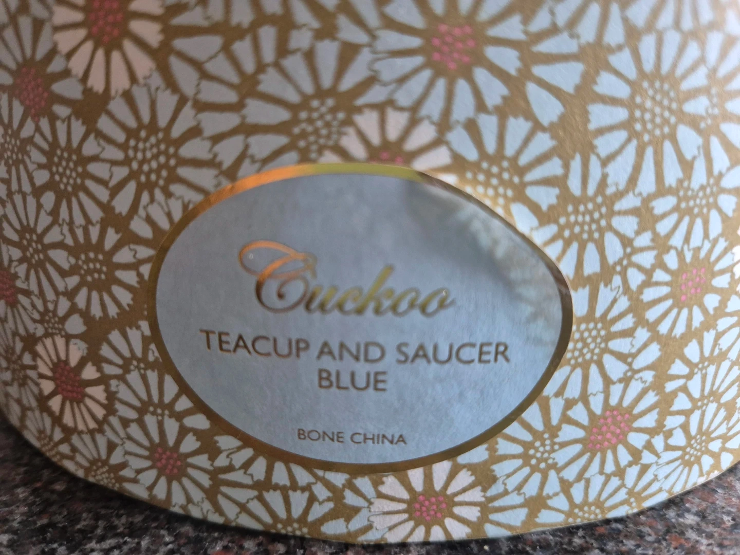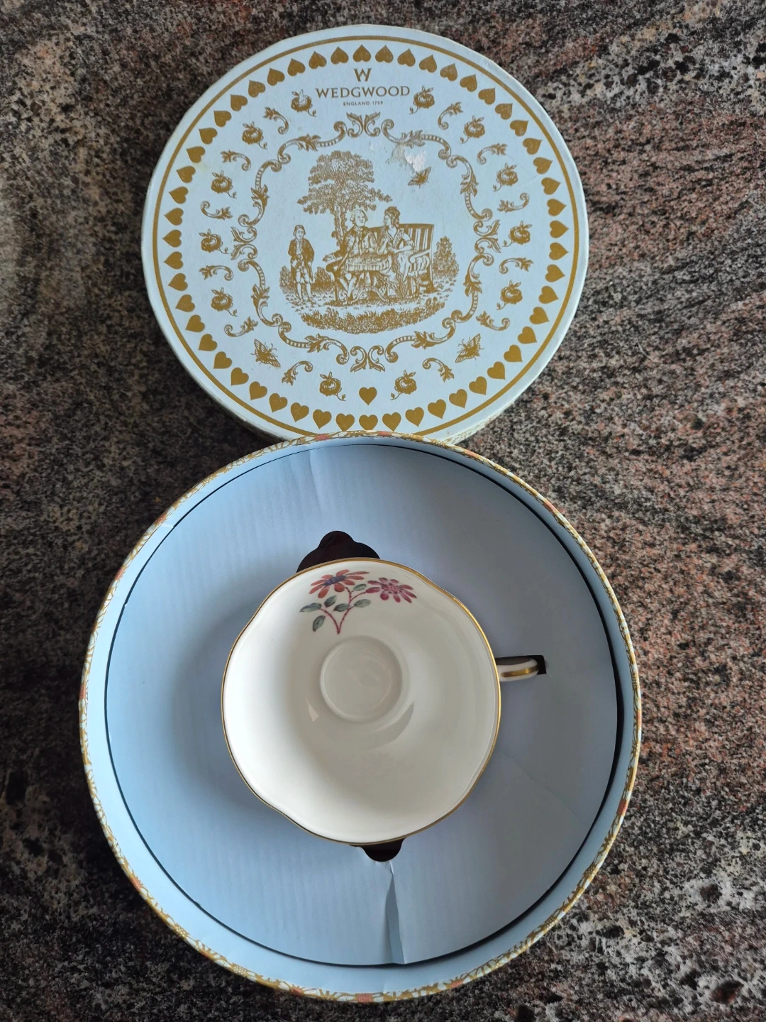 Selling beautiful Wedgwood Cuckoo teacup and saucer in pink and blue! It's made of bone china and comes with its original box. A lovely addition to any tea set or a perfect gift for a tea lover.