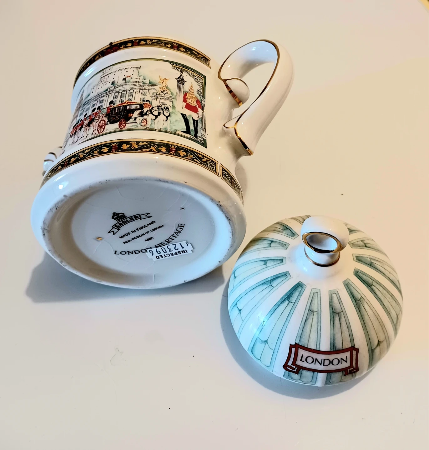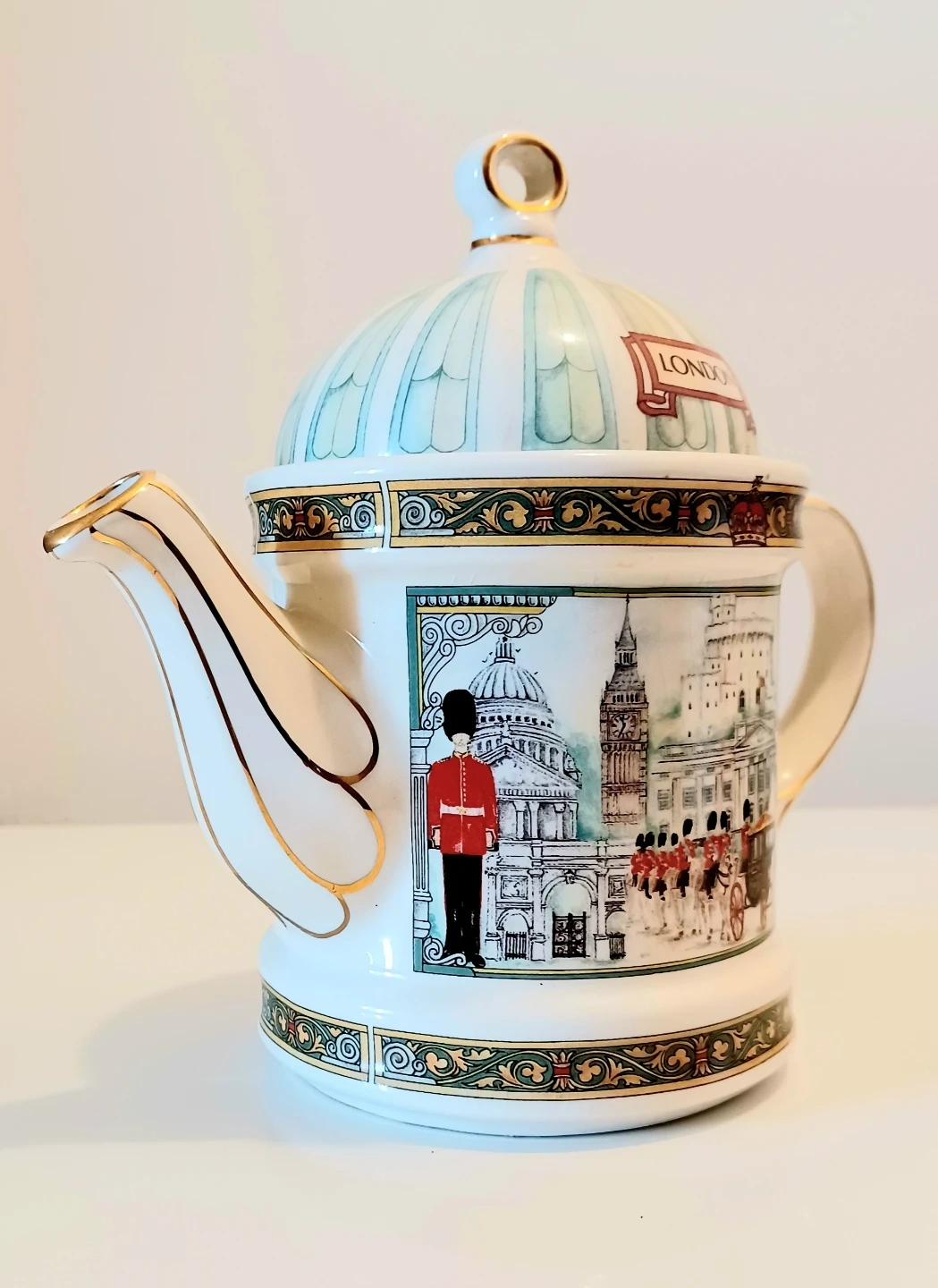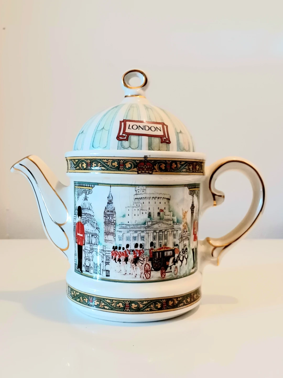 Vintage,New Sadler London Heritage Teapot that features detailed London scenes. The teapot was for display only , it is in Excellent condition,with Original Sticker and is a charming collectible.