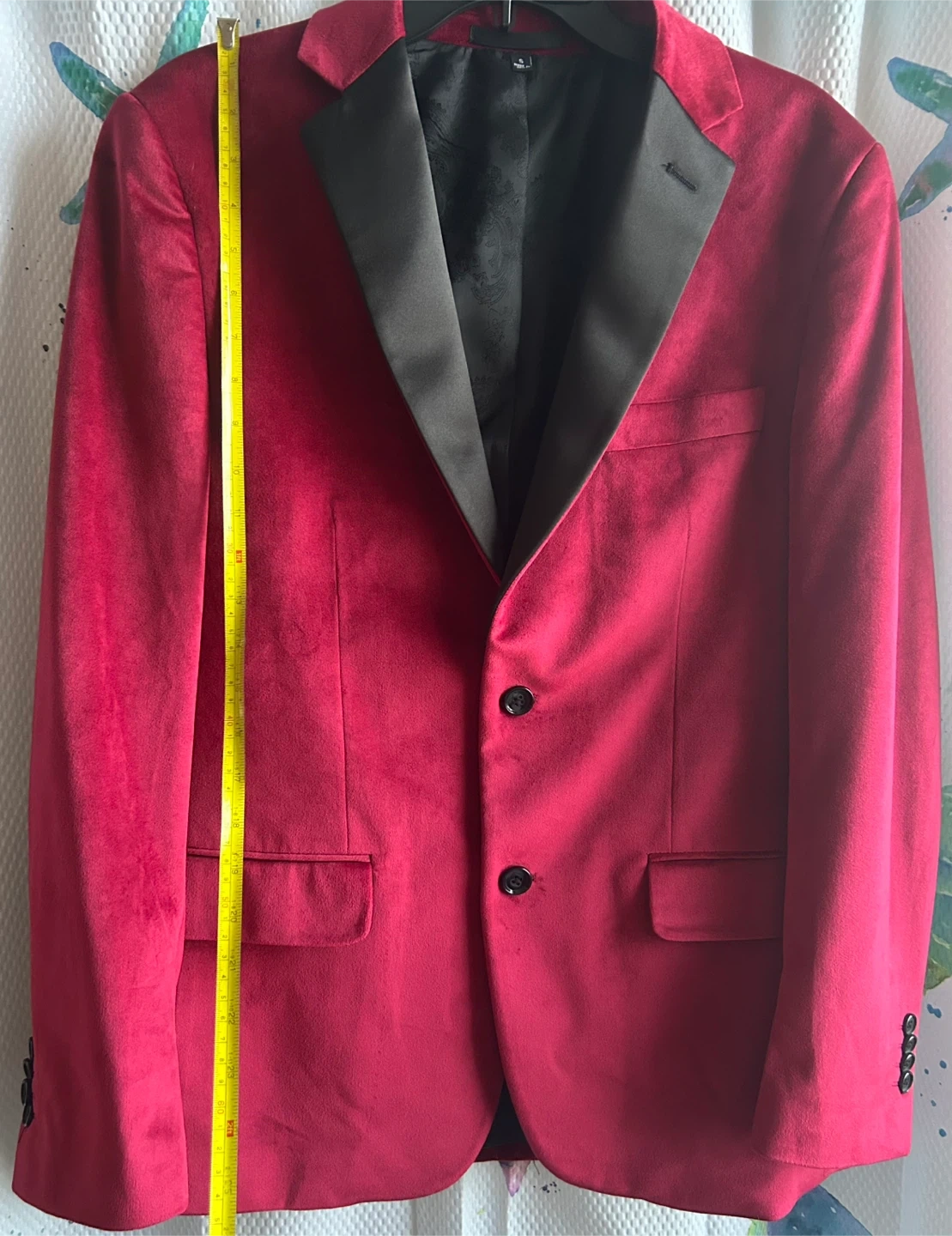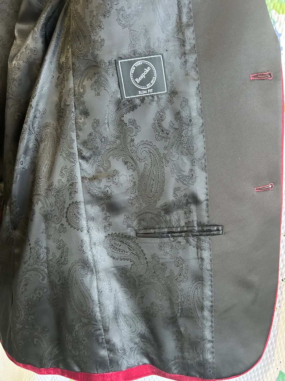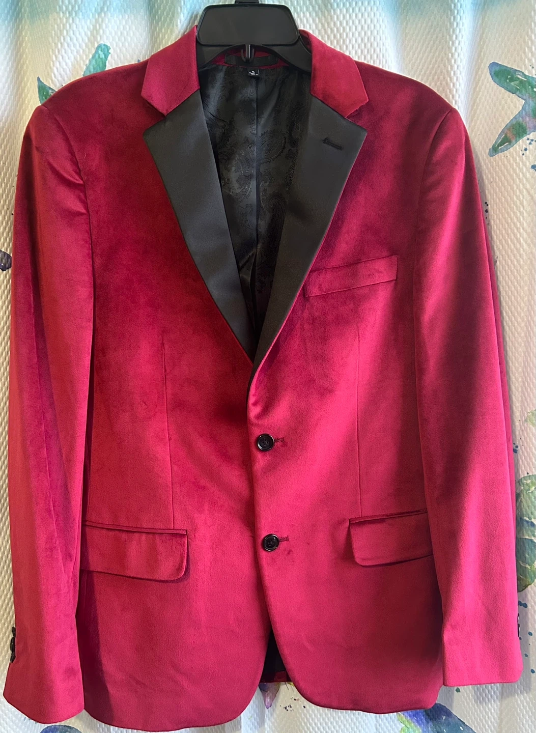 Selling a gently used Men’s red /burgundy velvet blazer with black lapels. It's ready for a new owner! It’s only been used twice, just needs a dry clean. The blazer is a stylish statement piece perfect for special occasions or adding a touch of elegance to your wardrobe. The soft velvet material feels luxurious and comfortable. Size small. I paid $150 for it this year.