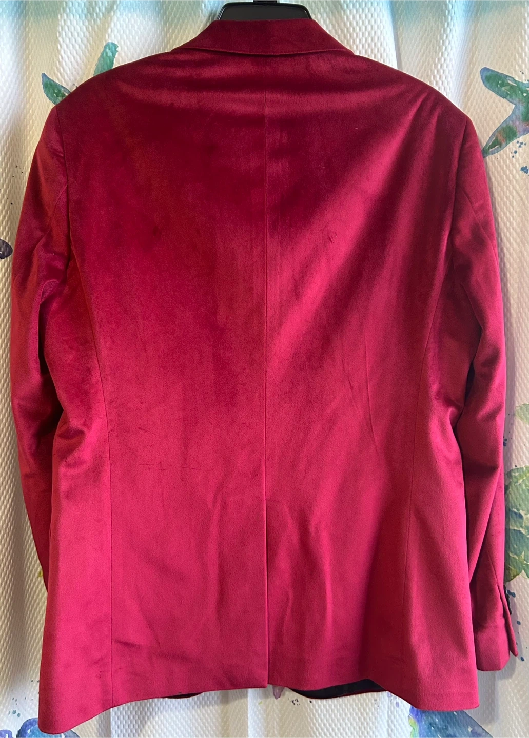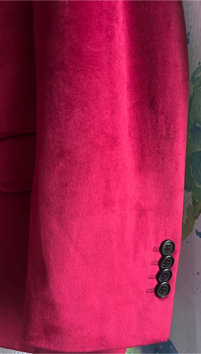 Selling a gently used Men’s red /burgundy velvet blazer with black lapels. It's ready for a new owner! It’s only been used twice, just needs a dry clean. The blazer is a stylish statement piece perfect for special occasions or adding a touch of elegance to your wardrobe. The soft velvet material feels luxurious and comfortable. Size small. I paid $150 for it this year.