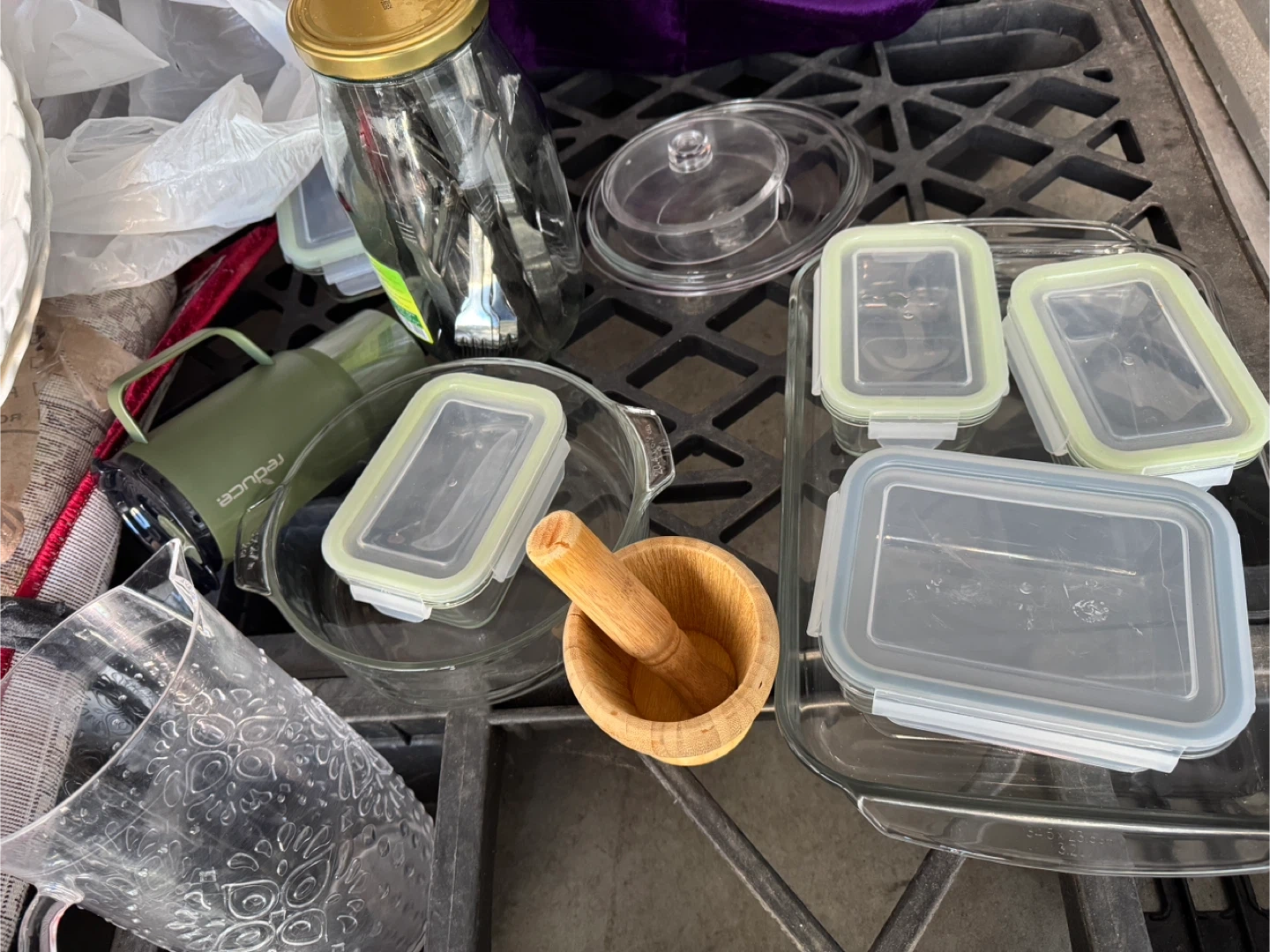 Selling a mixed lot of kitchenware items! Includes various bowls, pots, and food storage containers. Perfect for stocking up your kitchen or replacing old items. See photos for details!