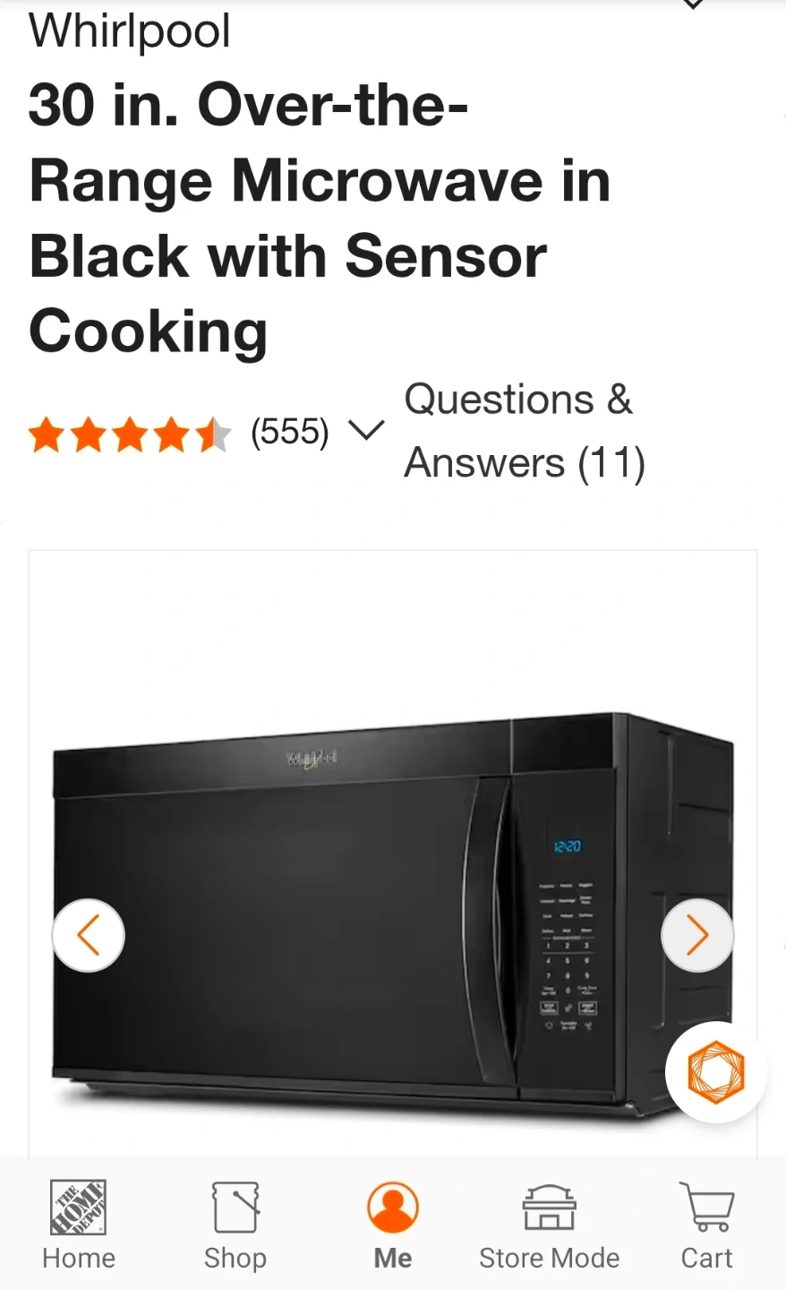 Whirlpool 30-in Over-the-Range Microwave [Black] *NEW*