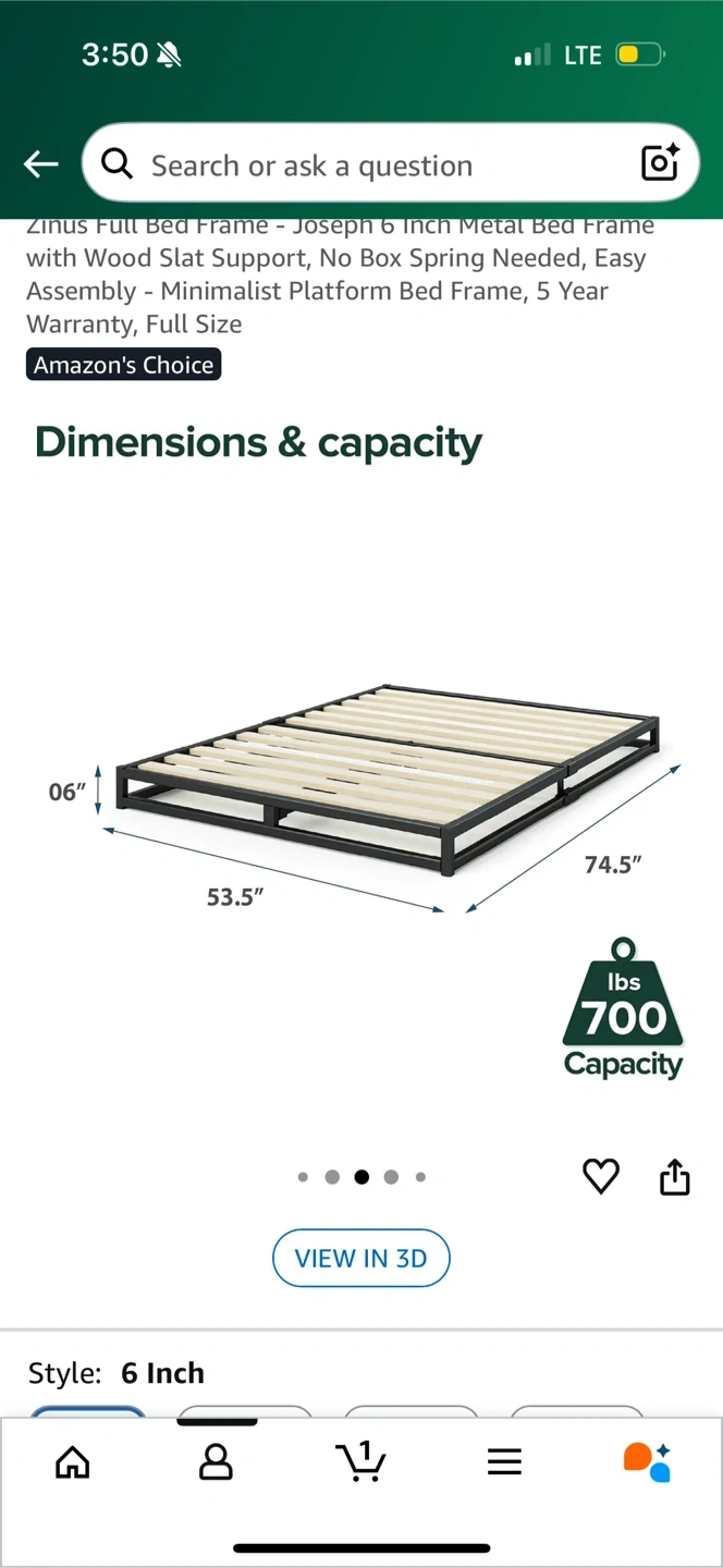 Selling a Zinus Joseph 6 Inch Metal Bed Frame in full size. It's a minimalist platform bed frame with wood slat support. Easy to assemble and no box spring is needed. It's super sturdy with a 700 lbs capacity! Originally bought for $132